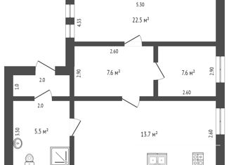 Общая площадь: 53.2 м2