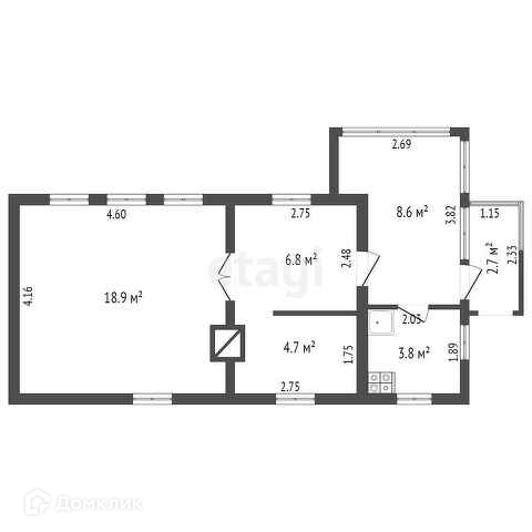 Общая площадь 42.4 м2