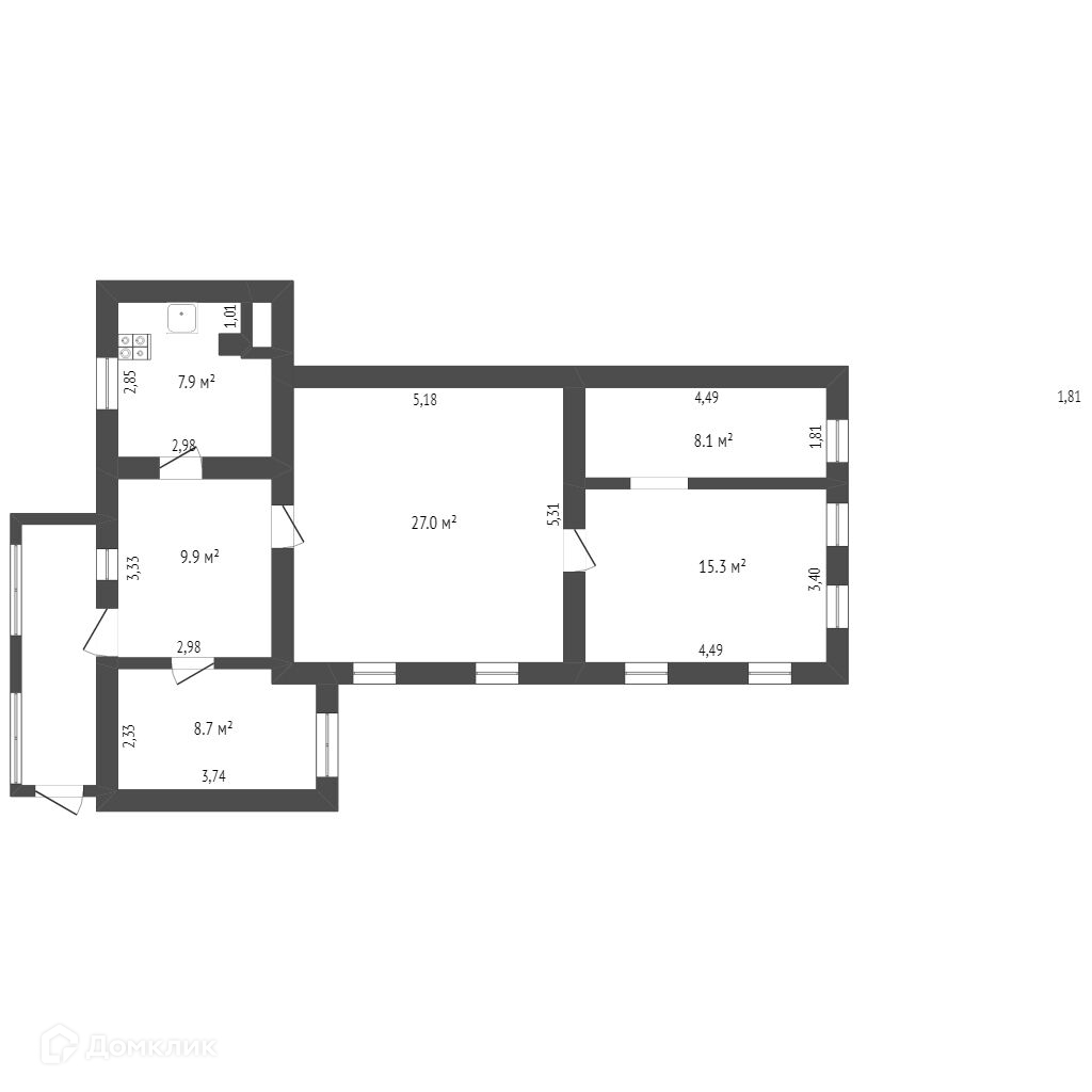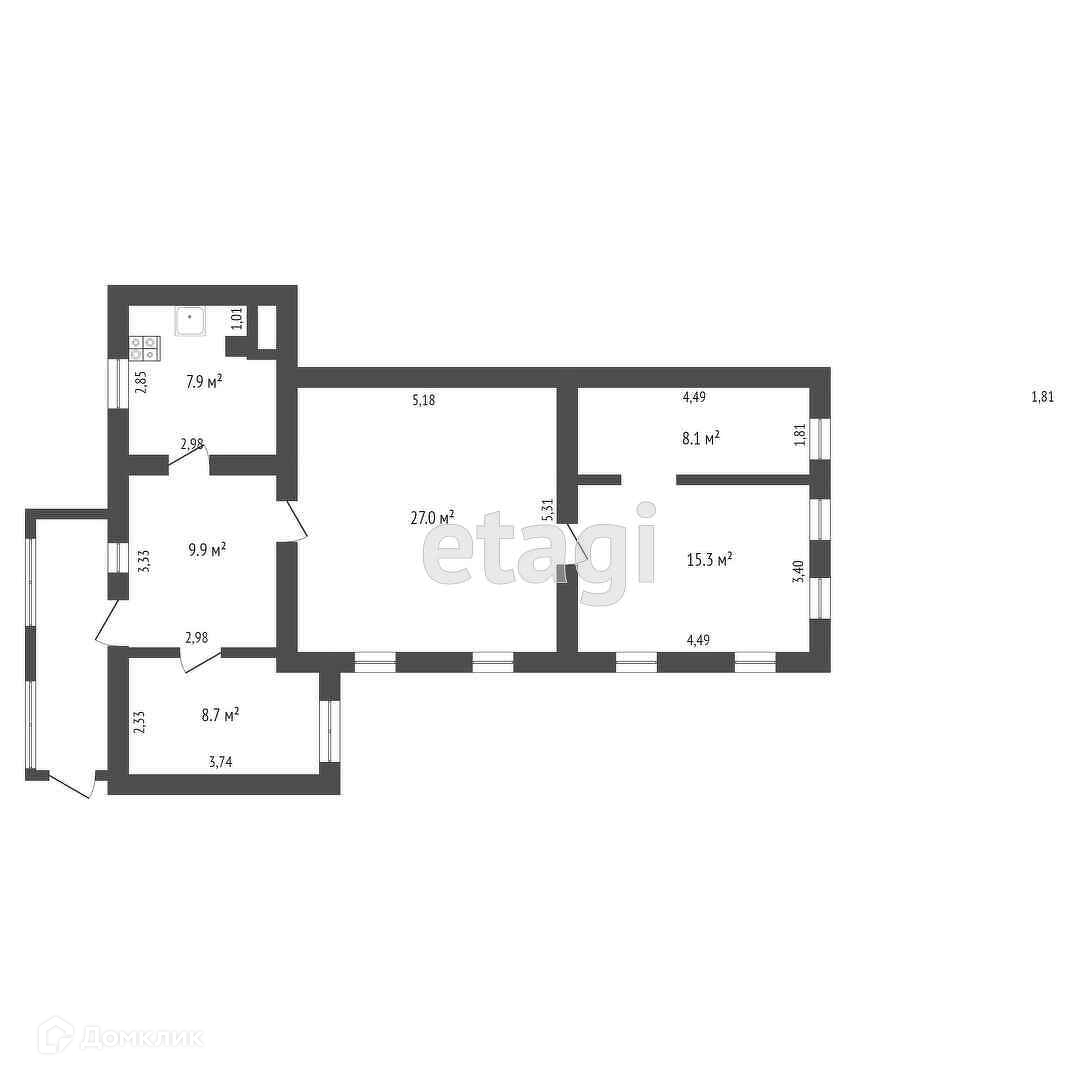 Общая площадь 76.9 м2