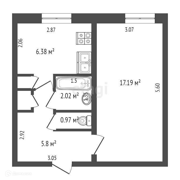 Общая площадь 33 м2
