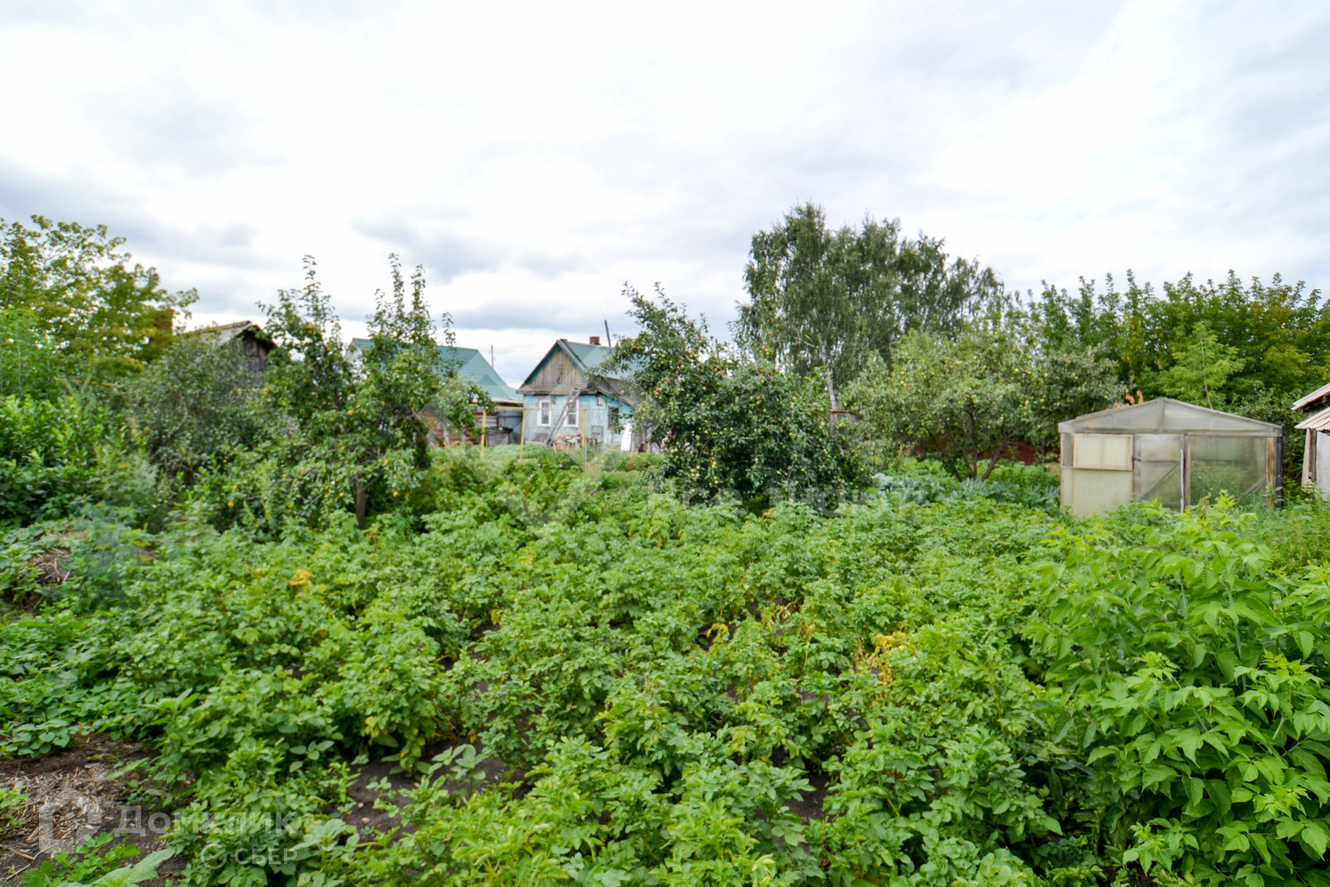 - за огородом хороший уход (много плодоносящих деревьев, земля засажена)