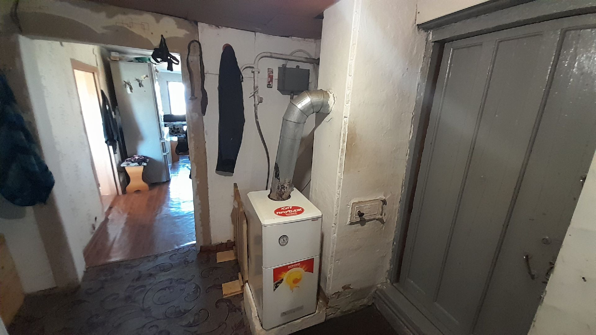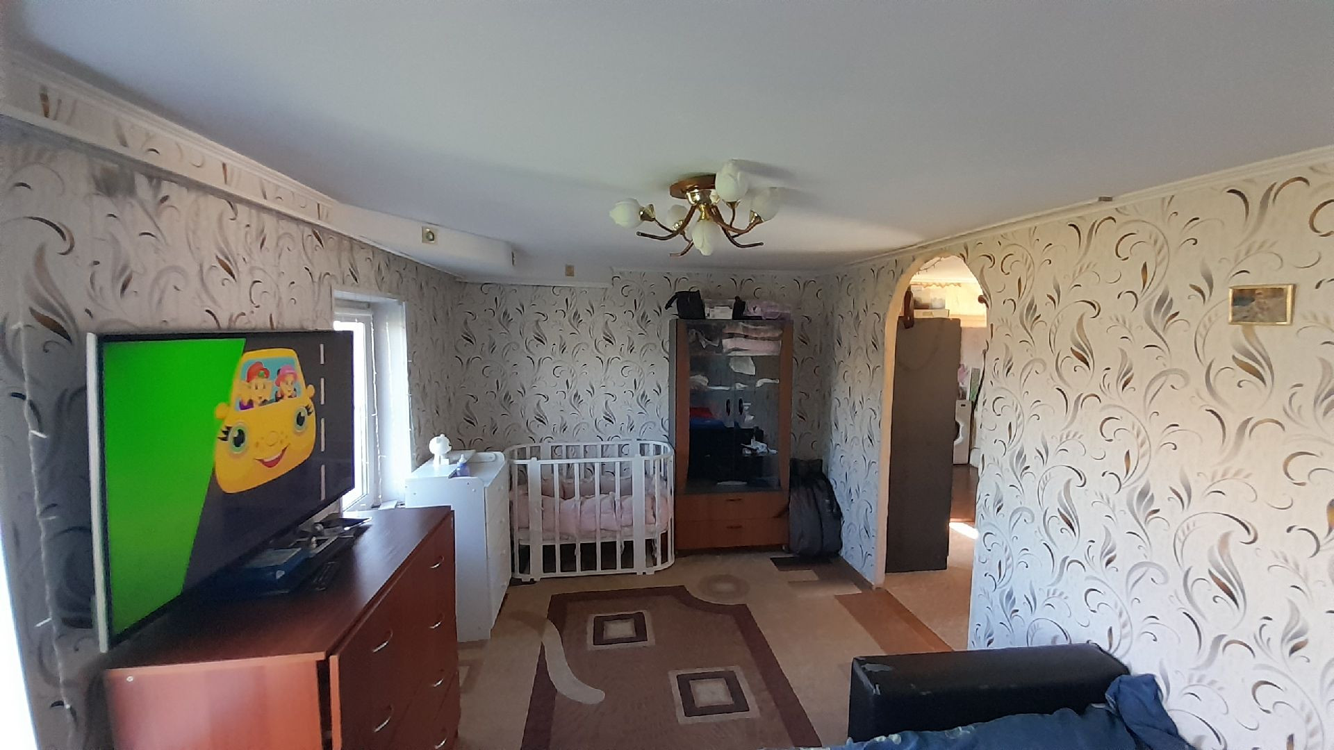 Две раздельные комнаты и зал, просторная кухня. В доме сделан косметический ремонт, установлены евроокна, натяжные потолки, линолеум. Высокие потолки, дом очень светлый.