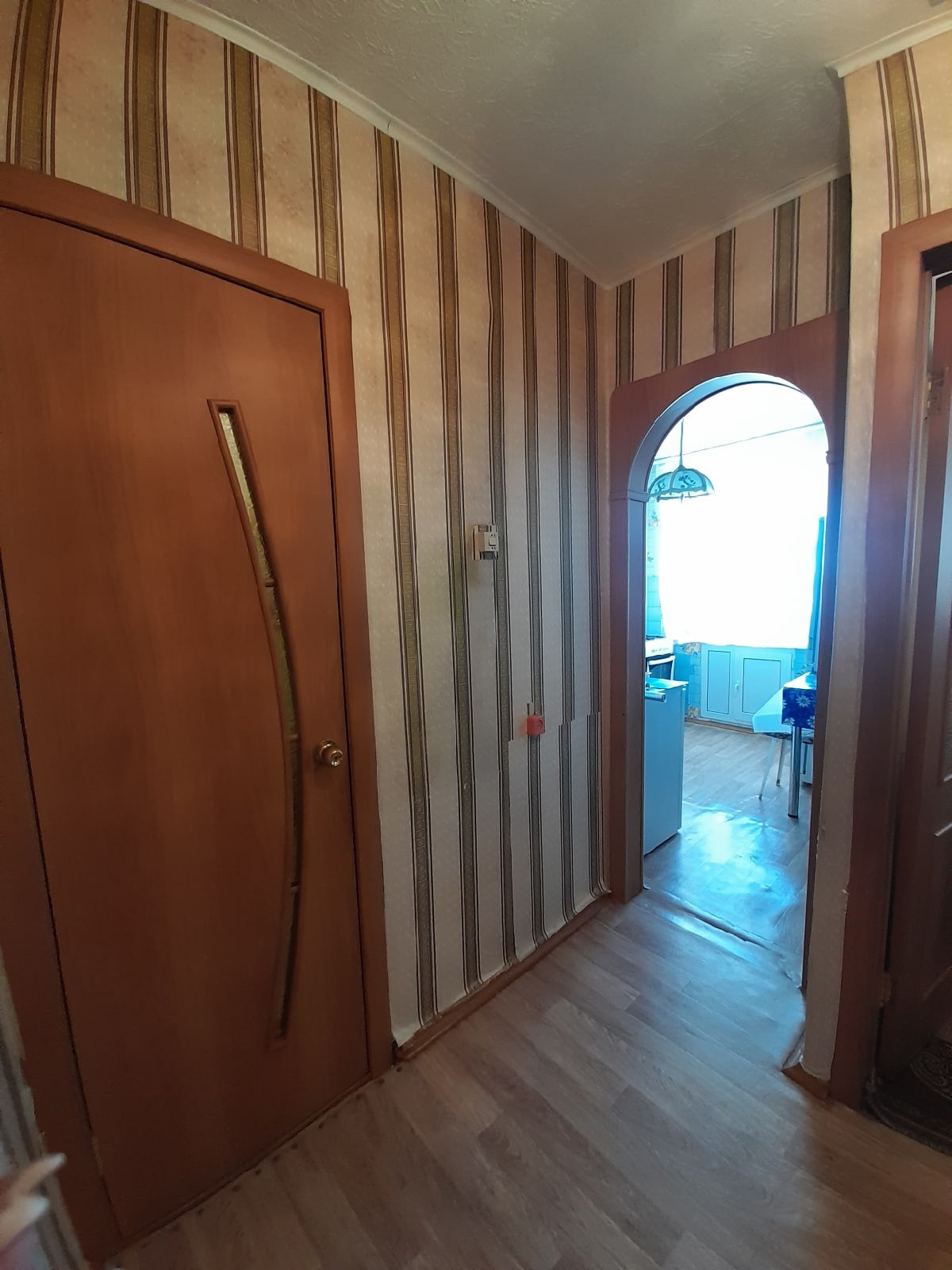 В квартире выполнен хороший ремонт: большая комната с нишей, для спального места или гардеробной. Поклеены обои, на полу постелен линолеум, межкомнатные двери, евроокна, застекленный балкон. Качественные входные двери