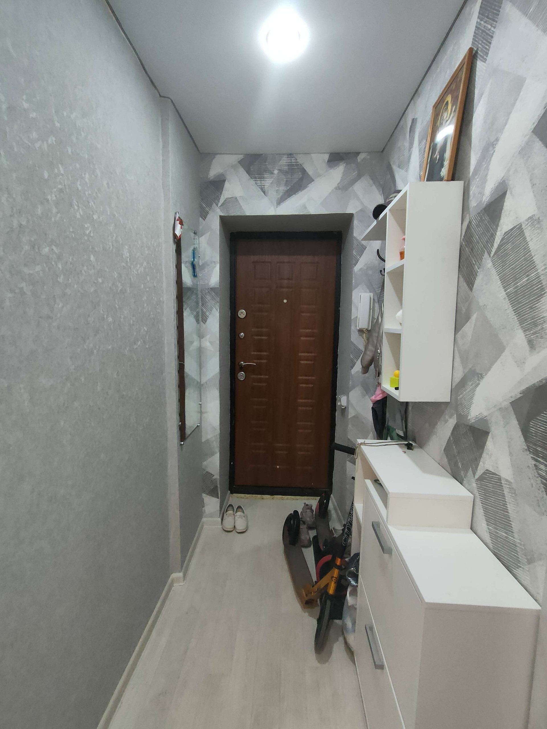 Чистый подъезд, добропорядочные соседи, благоустроенный двор с местами для парковки автомобилей.