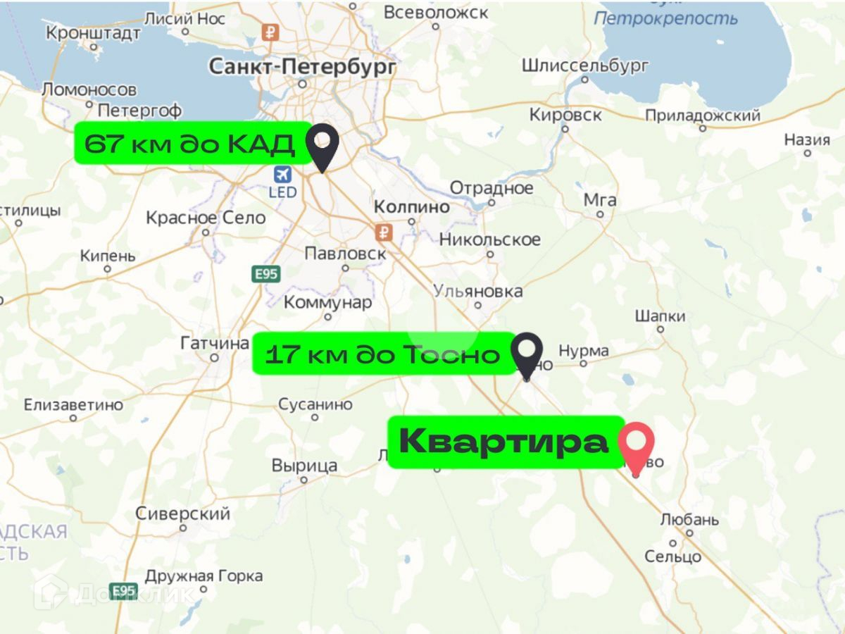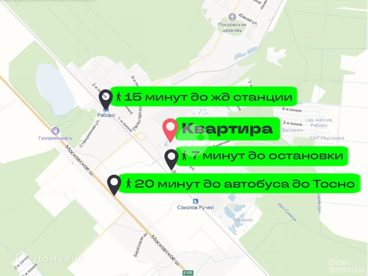 Поселок находится всего в 17 км от областного города Тосно, где есть вся необходимая социальная инфраструктура: сетевые маркеты, банки, амбулатория, поликлиника, роддом, детский сад, школы, бассейн, фитнес, стадион, парк и прочее. Недалеко от дома детский сад и школа.