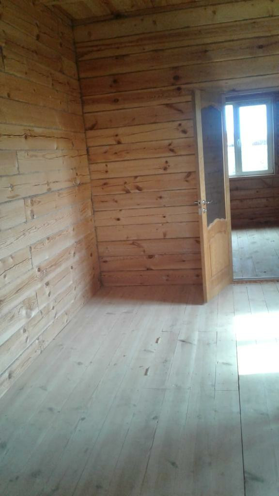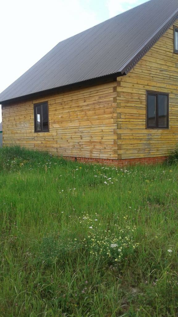 Новый дом (10 м х 10 м) из профилированного бруса. Газовые и электрические счётчики установлены. Вода проведена во двор.
