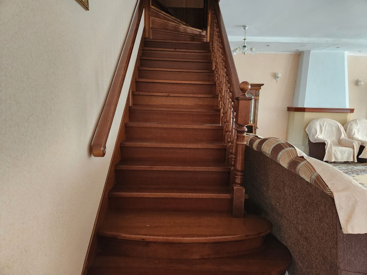 На первом этаже распологается большая веранда, кухня, гостиная с камином,котельная, жилые комнаты.