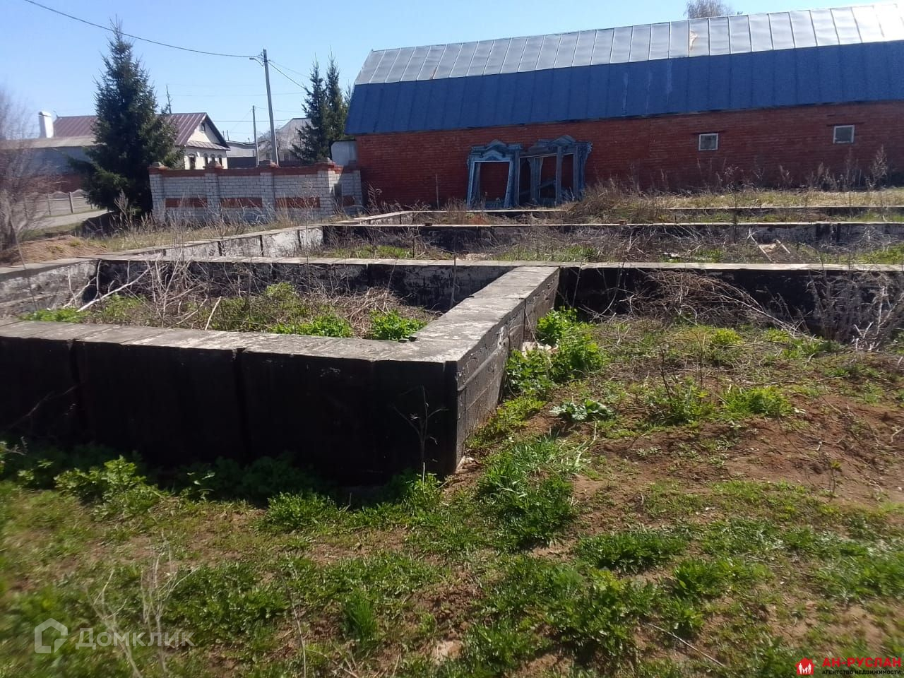 На территории построен фундамент ленточный под постройку нового дома размером 10,5*11 в 2020 г.