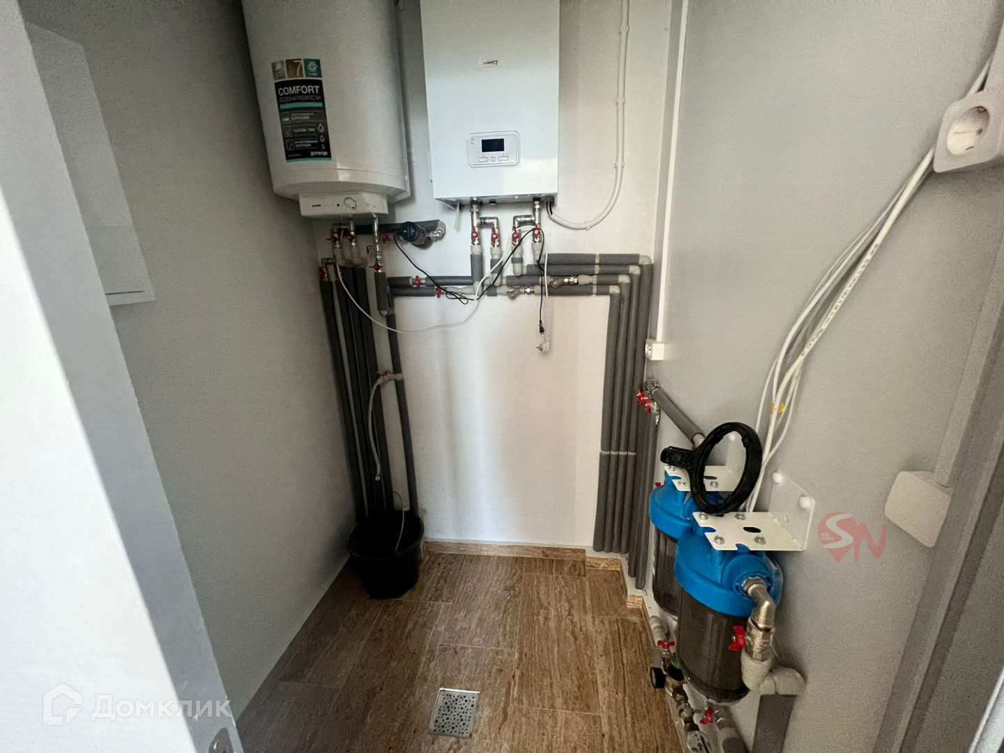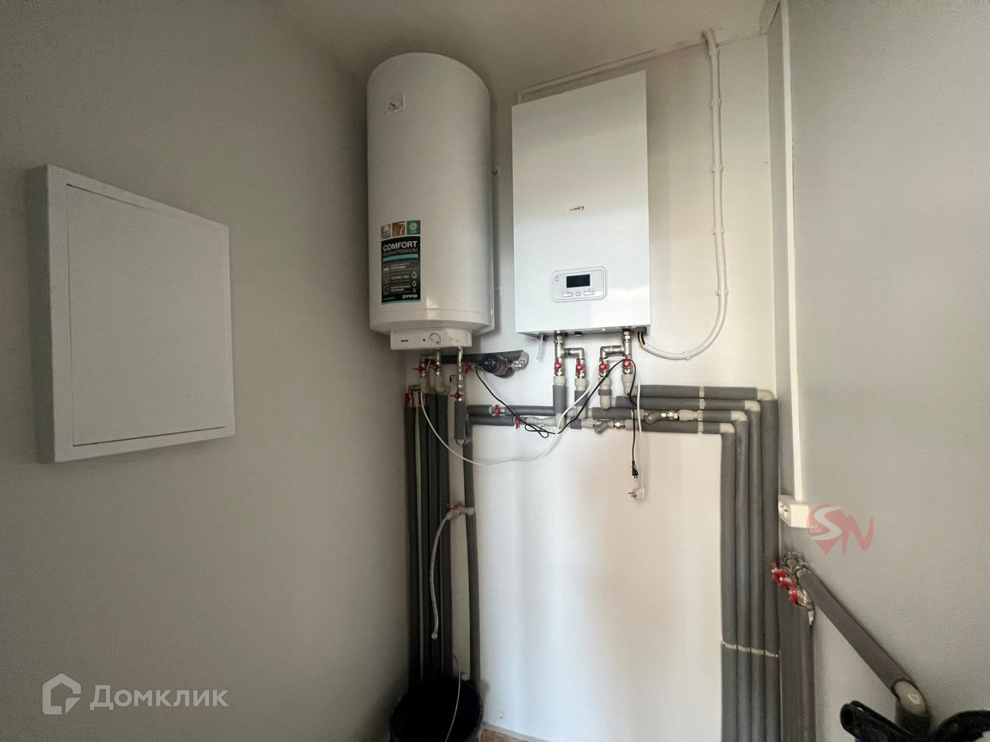 Капитальный ремонт коттеджа сделан два года назад, вплоть до замены электропроводки, стеклопакетов, дверей. Установлен бойлер для нагрева воды, для отопления -электрокотел.