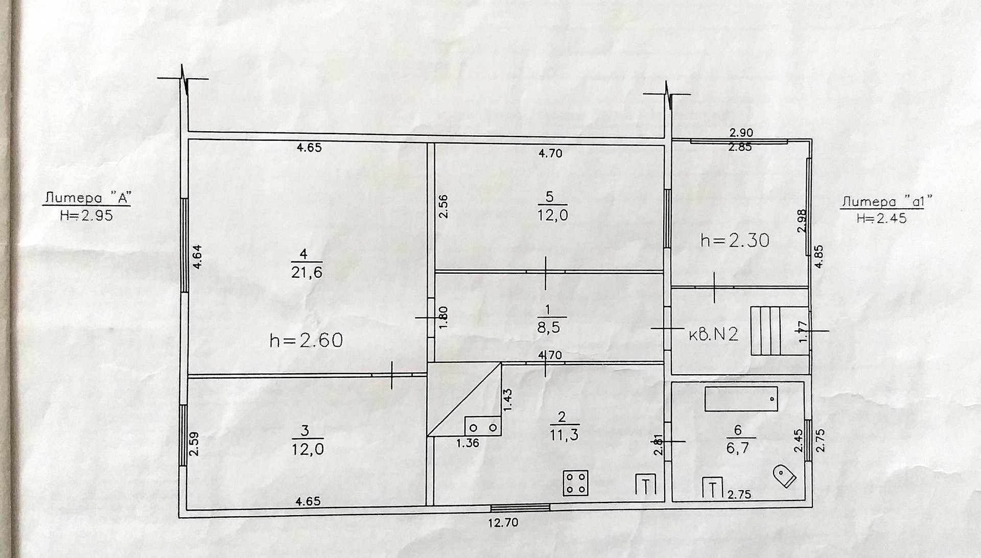Жилая площадь 45.6 м2