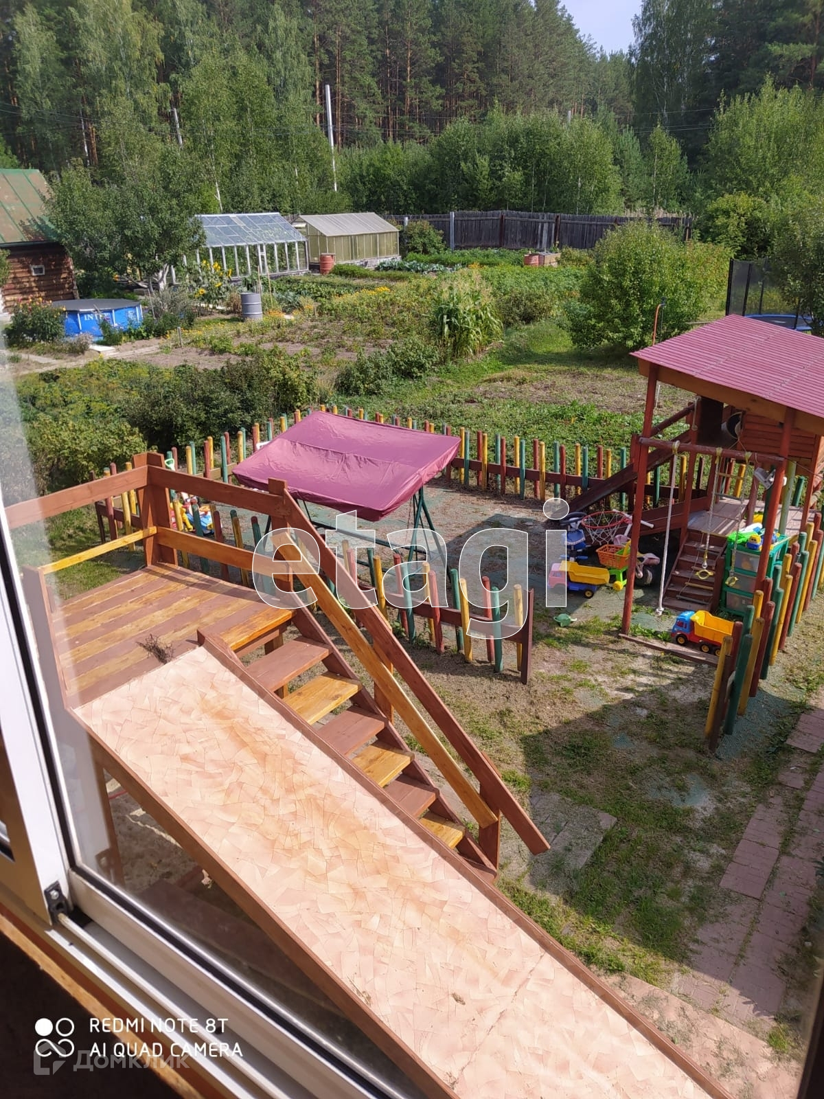 Участок разработан, есть грядки, место под бассейн, батут, растут плодовые деревья (яблони, груша, слива, ирга, смородина).