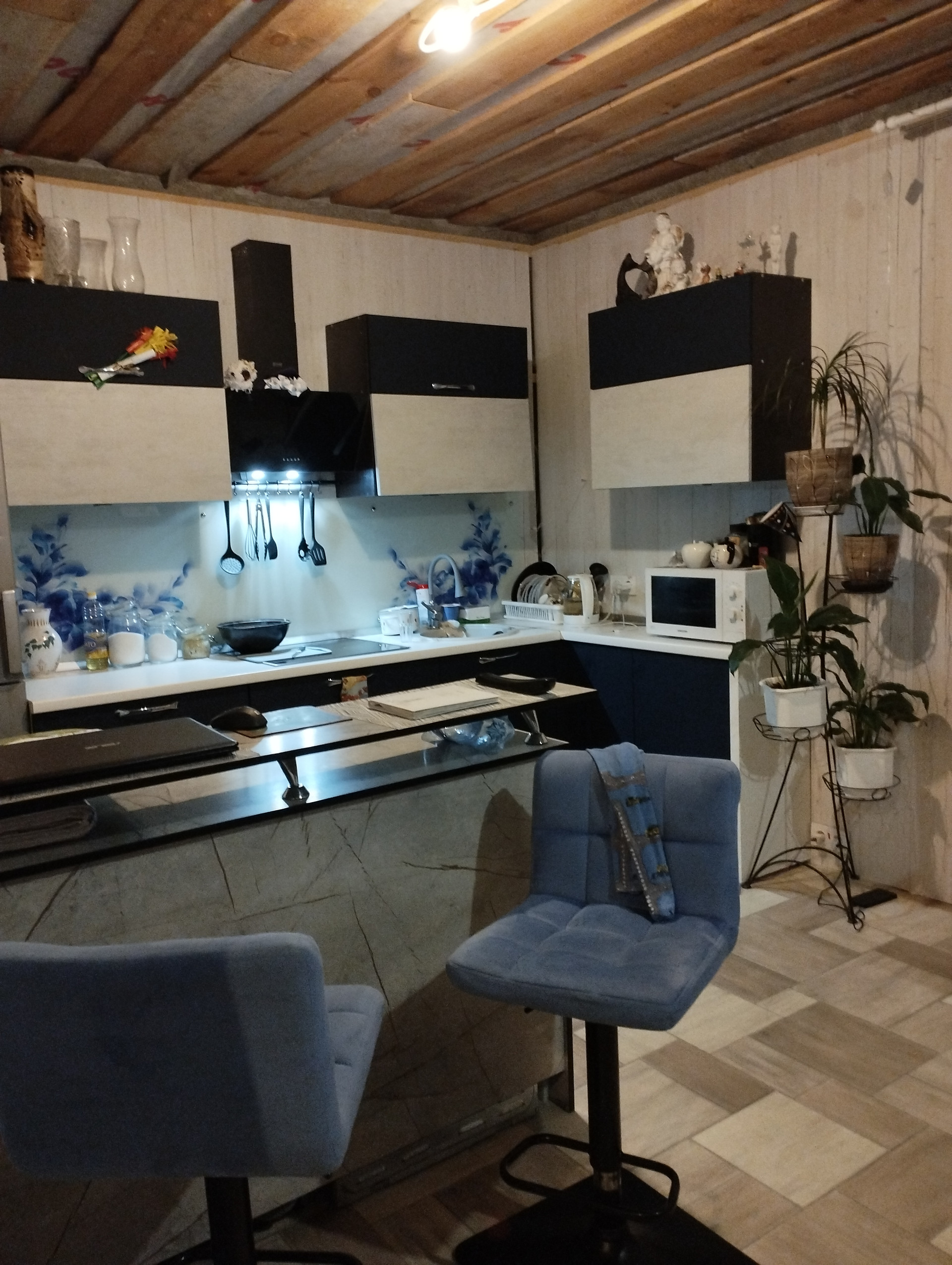 На первом этаже тёплые полы, котёл и водонагреватель оставляем, так же по желанию оставим кухонный гарнитур, барный и обеденный стол.