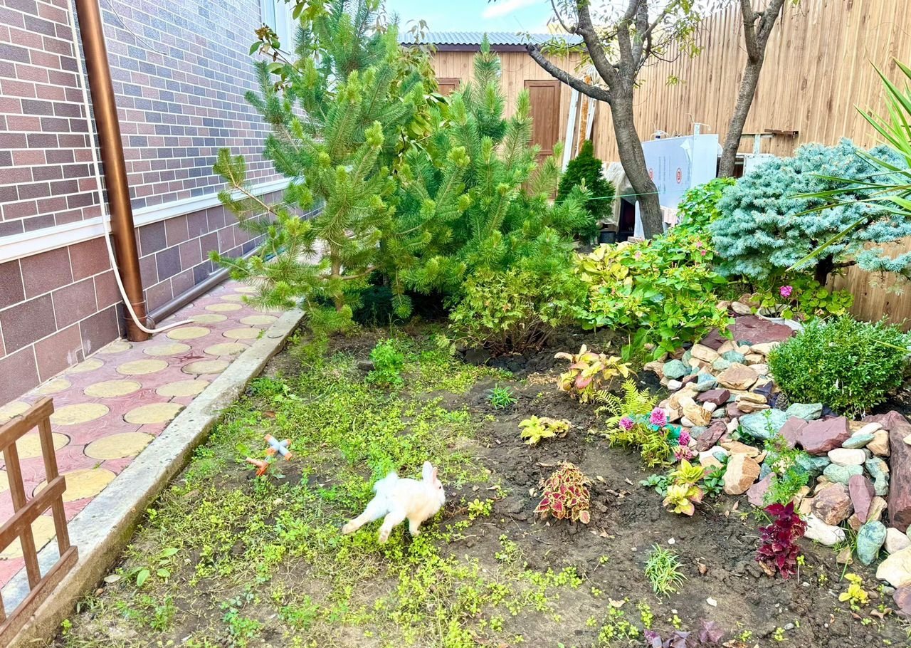 - альпийская зеленая зона во дворе . с большим разнообразием красивых растений .