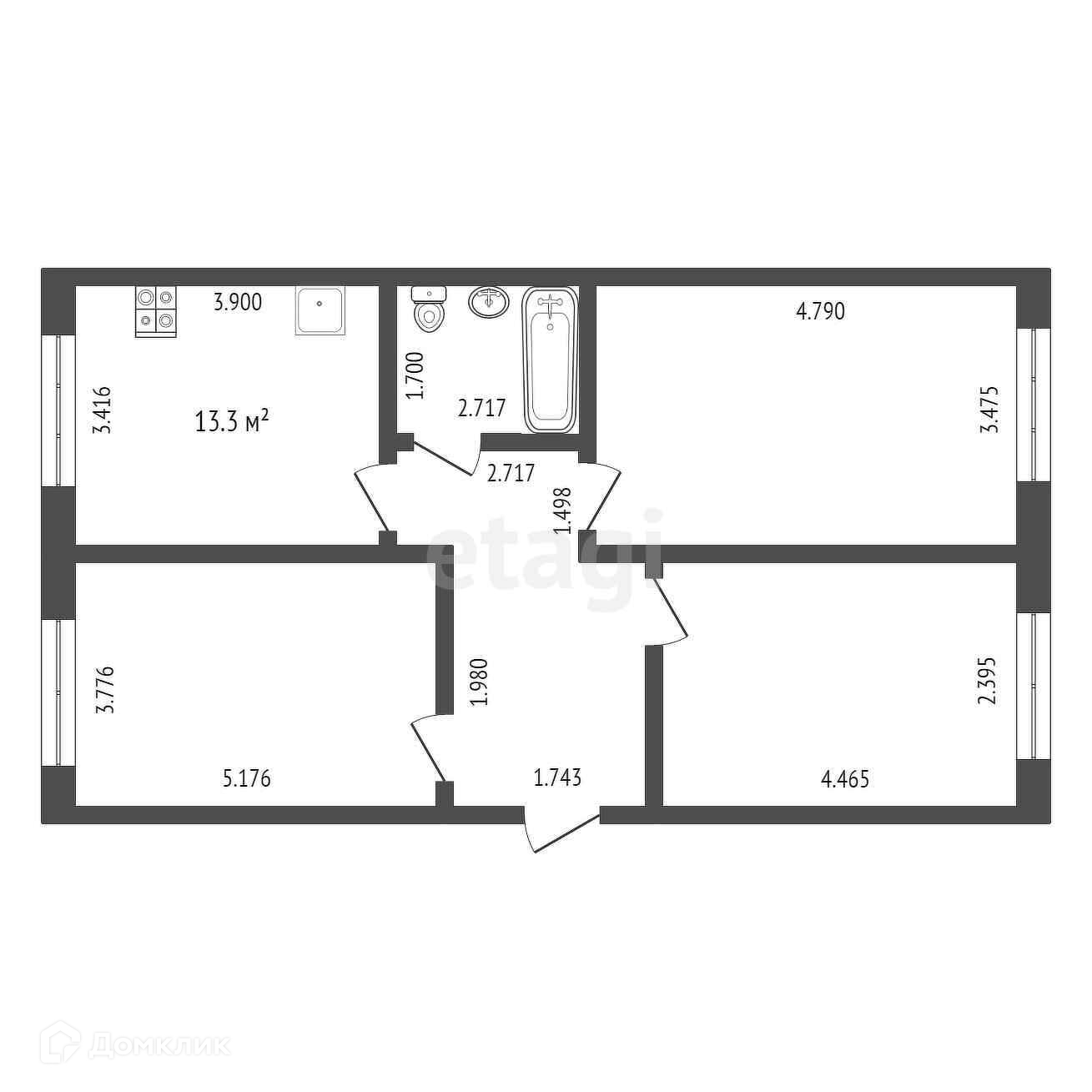 Площадь кухни 13.3 м2
