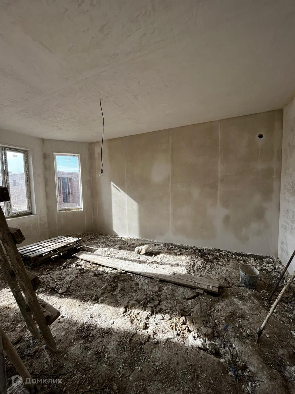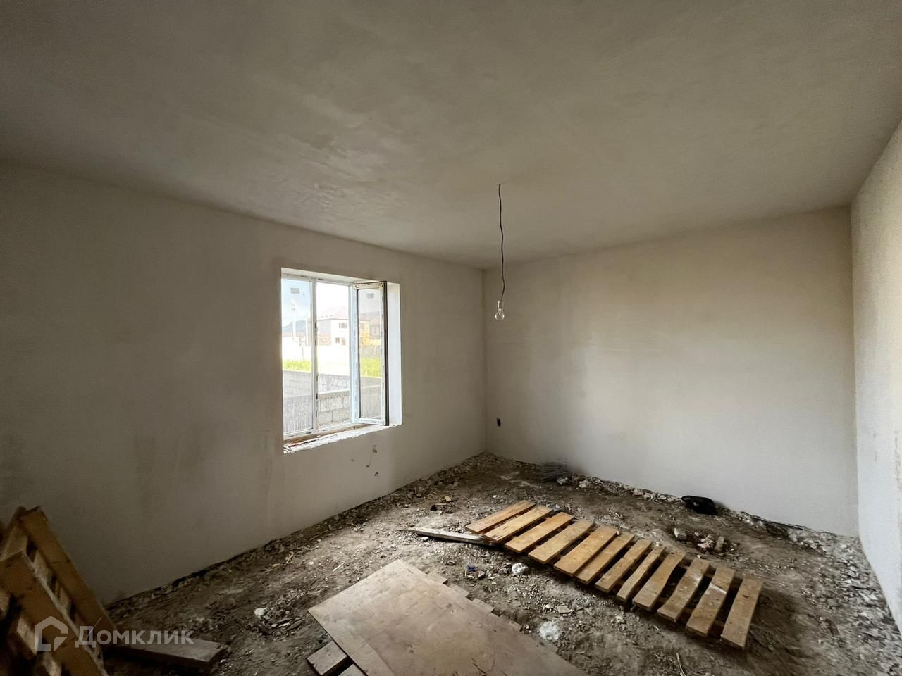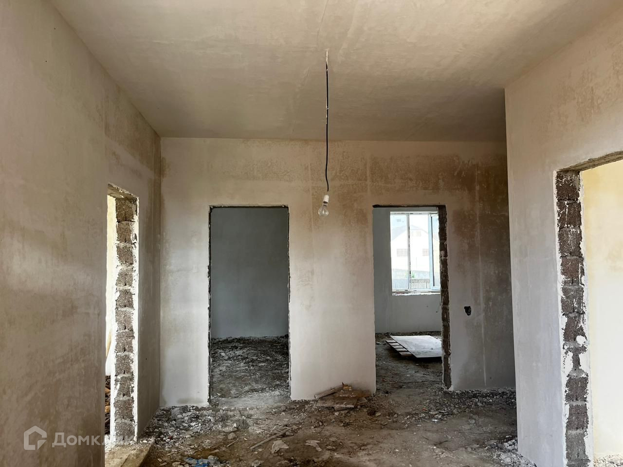 Выполнен черновые  работы, механизированная штукатурка, проводка, все коммуникации.