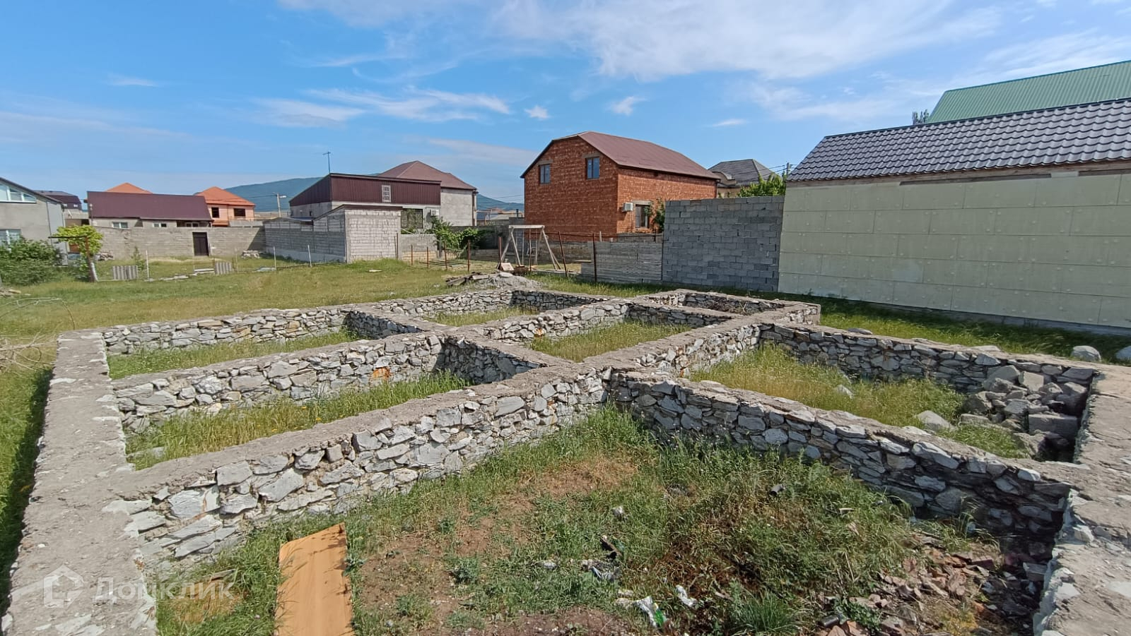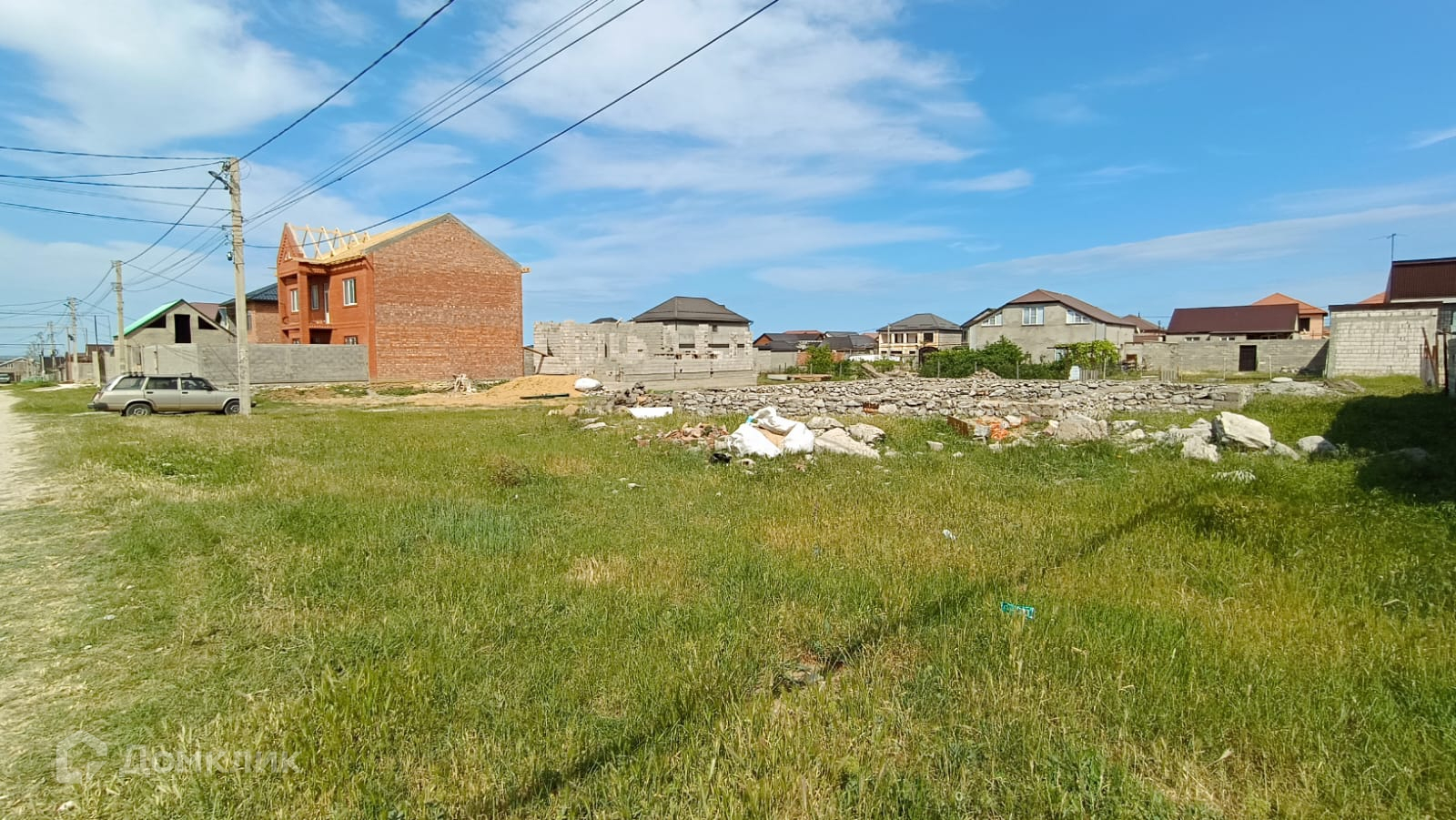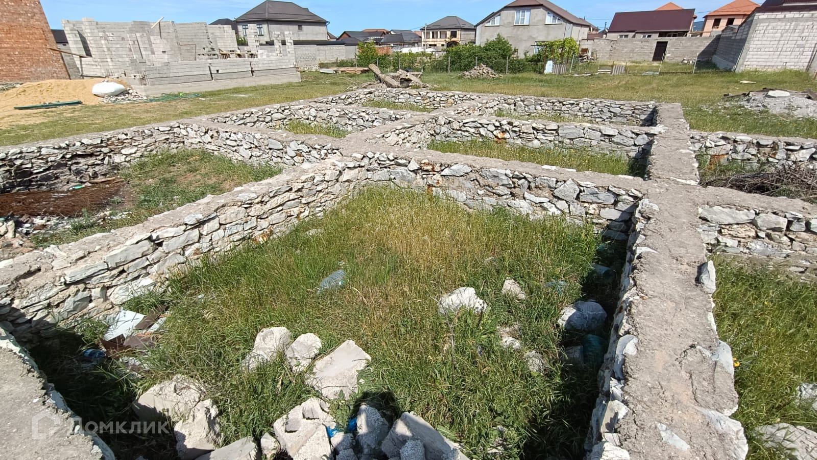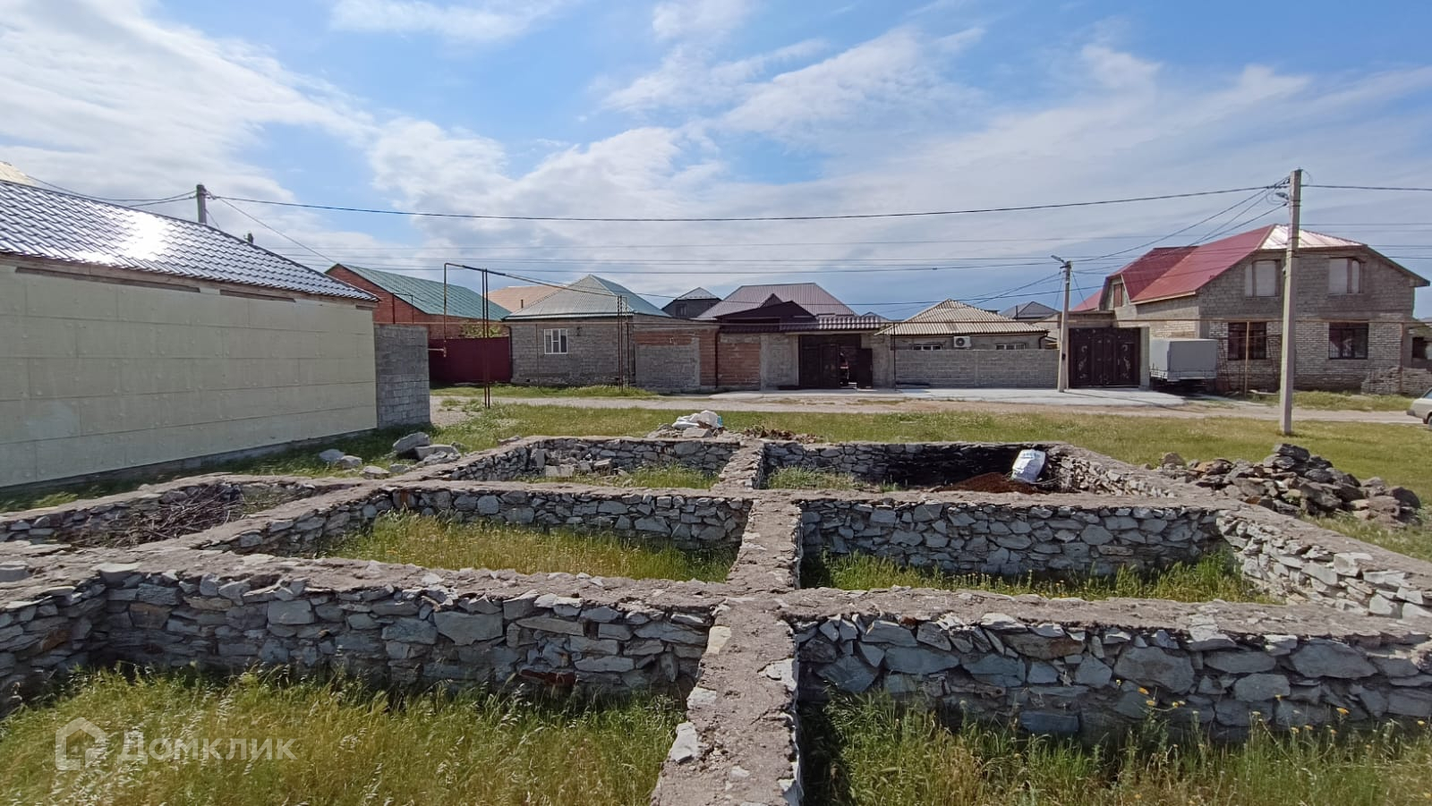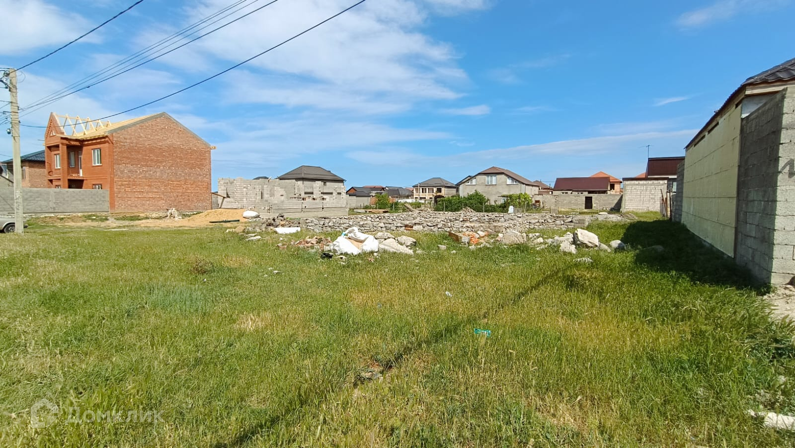 Участок ровный, коммуникации подведены, на участке есть фундамент  для посторойки дома.
