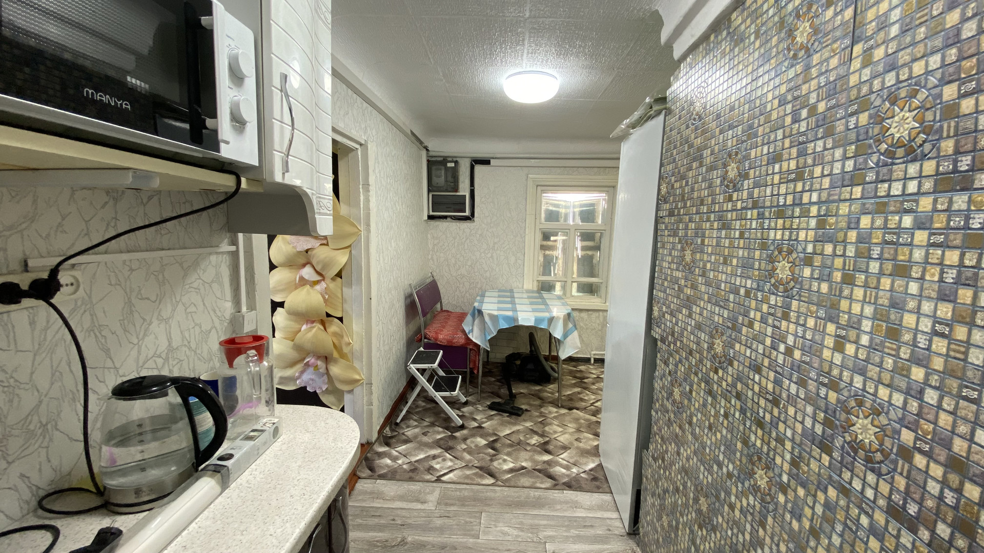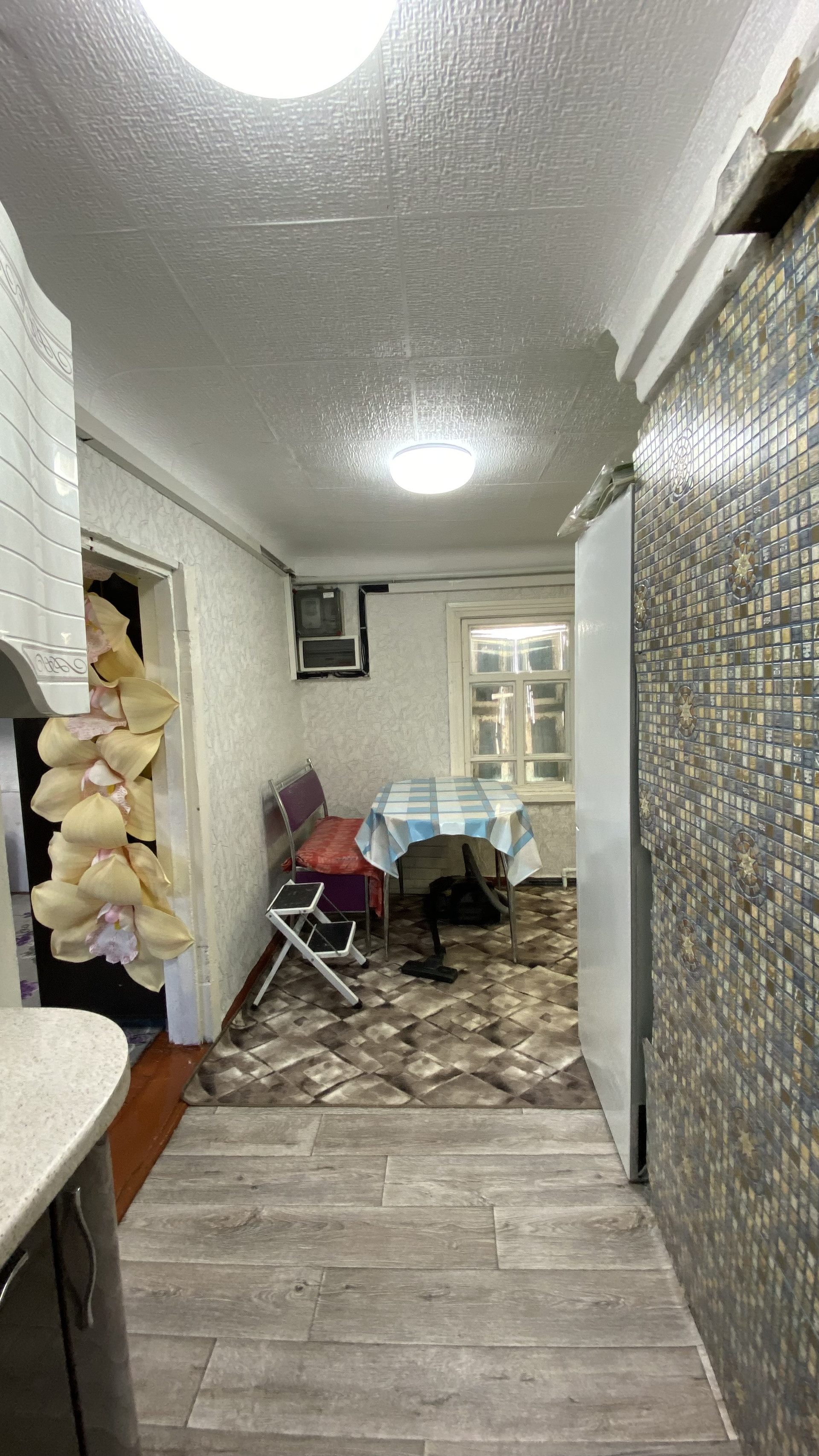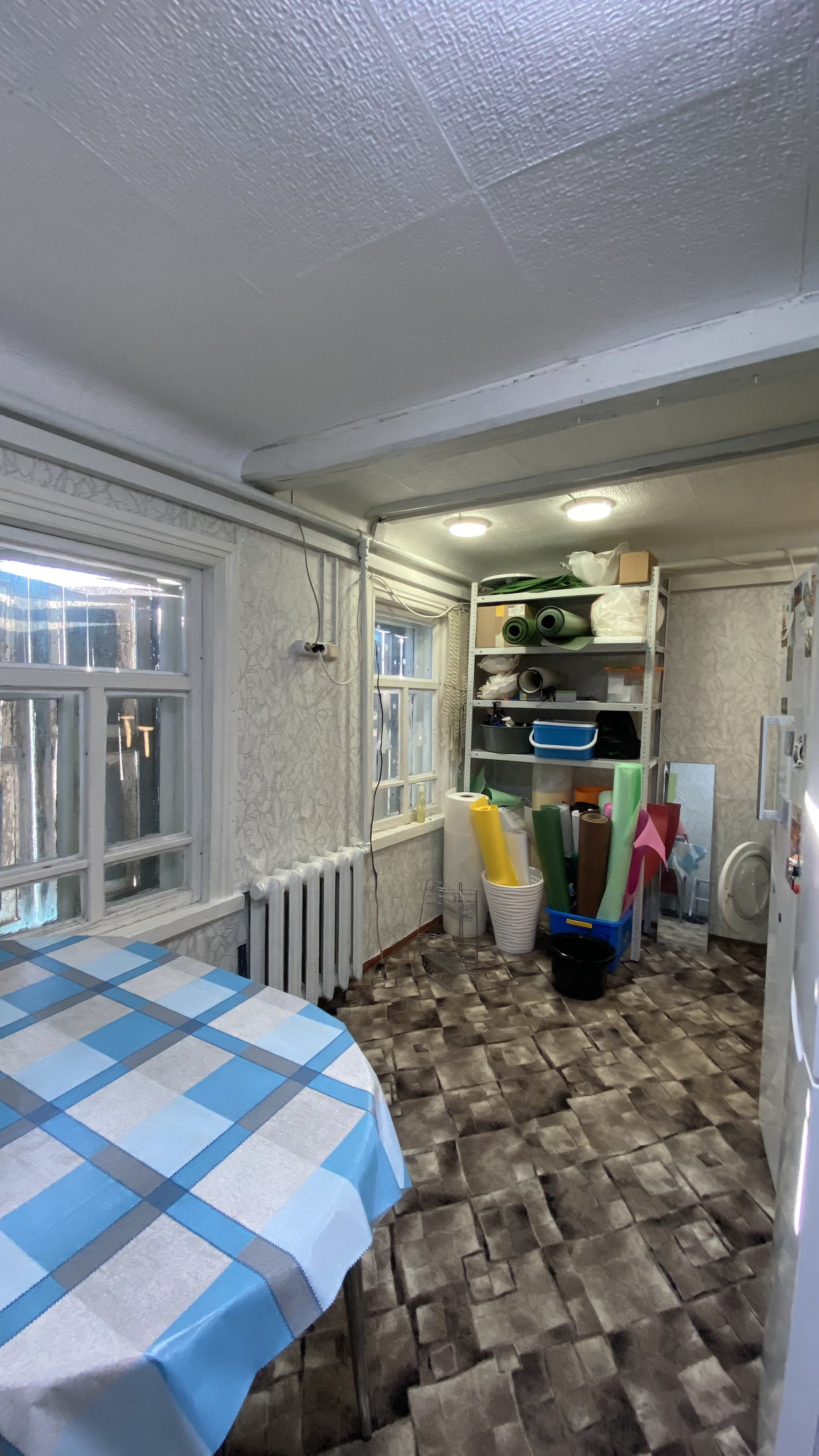 душевая комната, кухня, столовая,  кладовая, холодный коридор.