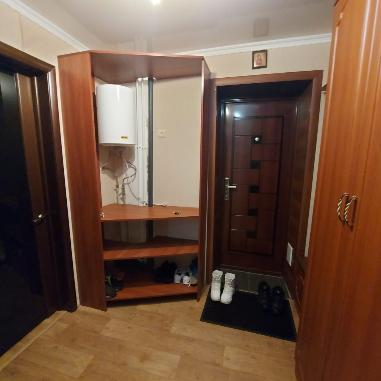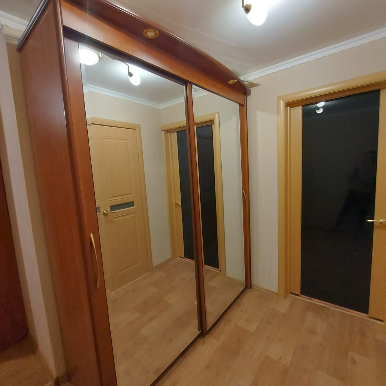 Продается 2-х комнатная квартира от собственника. Квартира не угловая, комнаты изолированные. В квартире капитальный ремонт, пластиковые окна, стояки воды и канализации заменены на полипропилен и пластик, новые батареи, натяжные потолки, новая сантехника, в санузлах на стенах и полу кафельная плитка. В ванной установлен электрический полотенцесушитель, водонагреватель, раковина с тумбой, настенный шкаф с зеркалом. Стояки воды, канализации - полностью заменены на полипропилен и пластик. Металлическая входная дверь. Кухня от мебельной фабрики ЕMFA, обеденная группа, новая газовая плита и вытяжка. В кухне под окном встроенный шкаф-холодильник. К кухонному водяному стояку подключен водонагреватель. В спальне 2-х спальная кровать, прикроватные тумбочки, комод, косметический столик, пуфик. Места хранения: шкаф-купе, распашной шкаф для одежды. В гостиной стенка от фабрики "Шатура", мягкий уголок, кресло. Лоджия застеклена, на стенах панели ПВХ, пластиковая рама.