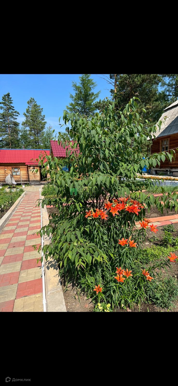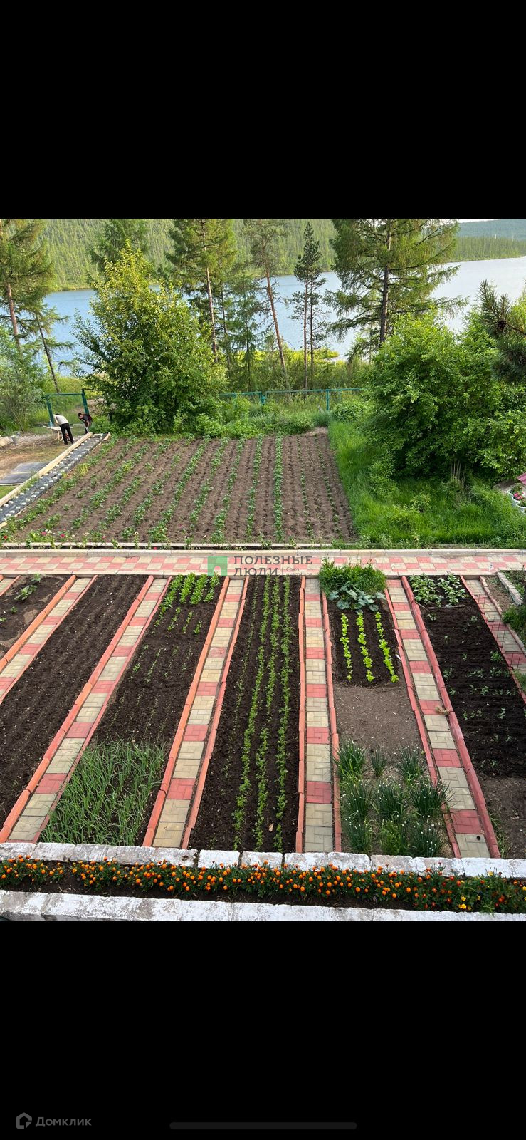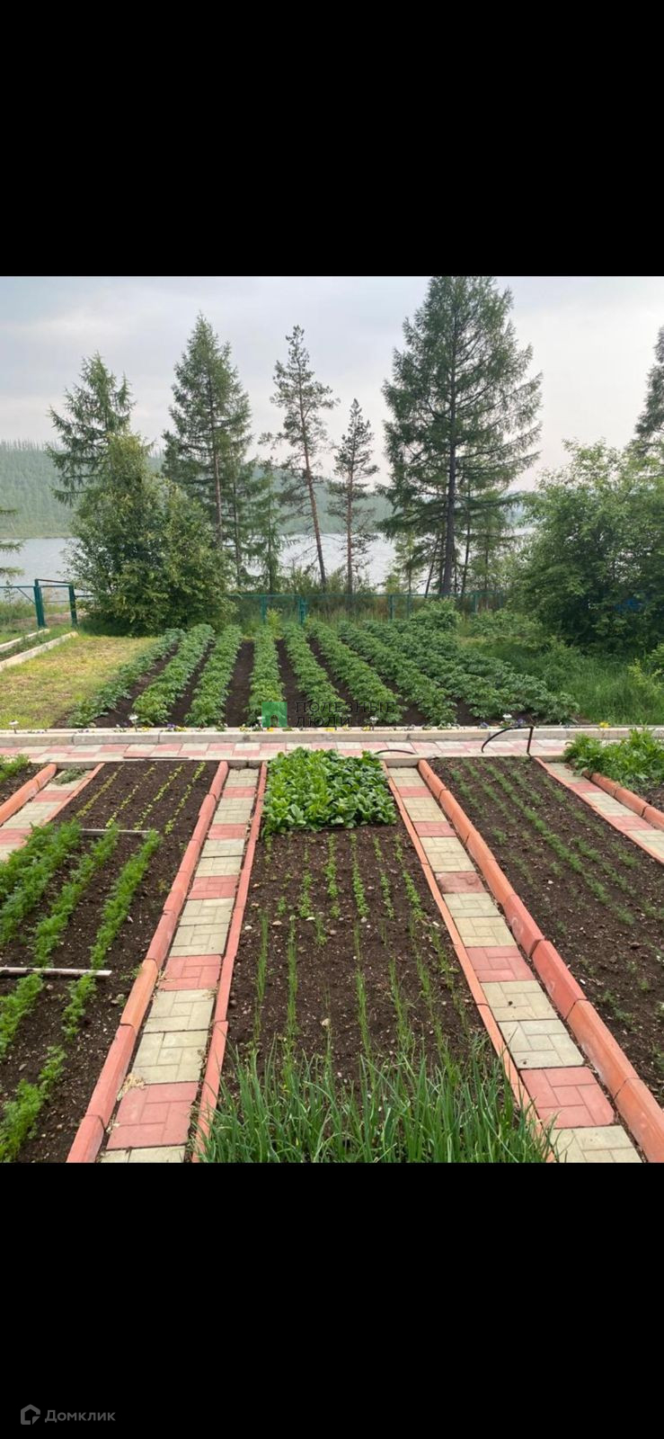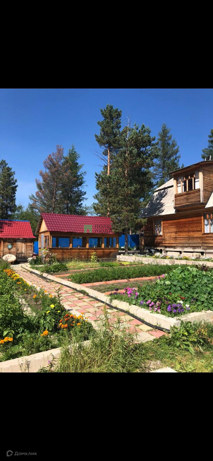 Ухоженный огород( поле для посадки картофеля, грядки под зелень). Растут смородина, малина, крыжсмородина ( гибрид смородины и крыжовника), клубника, яблоня, многолетние цветы и кустарники (пионы, лилии, сирень, сакура).