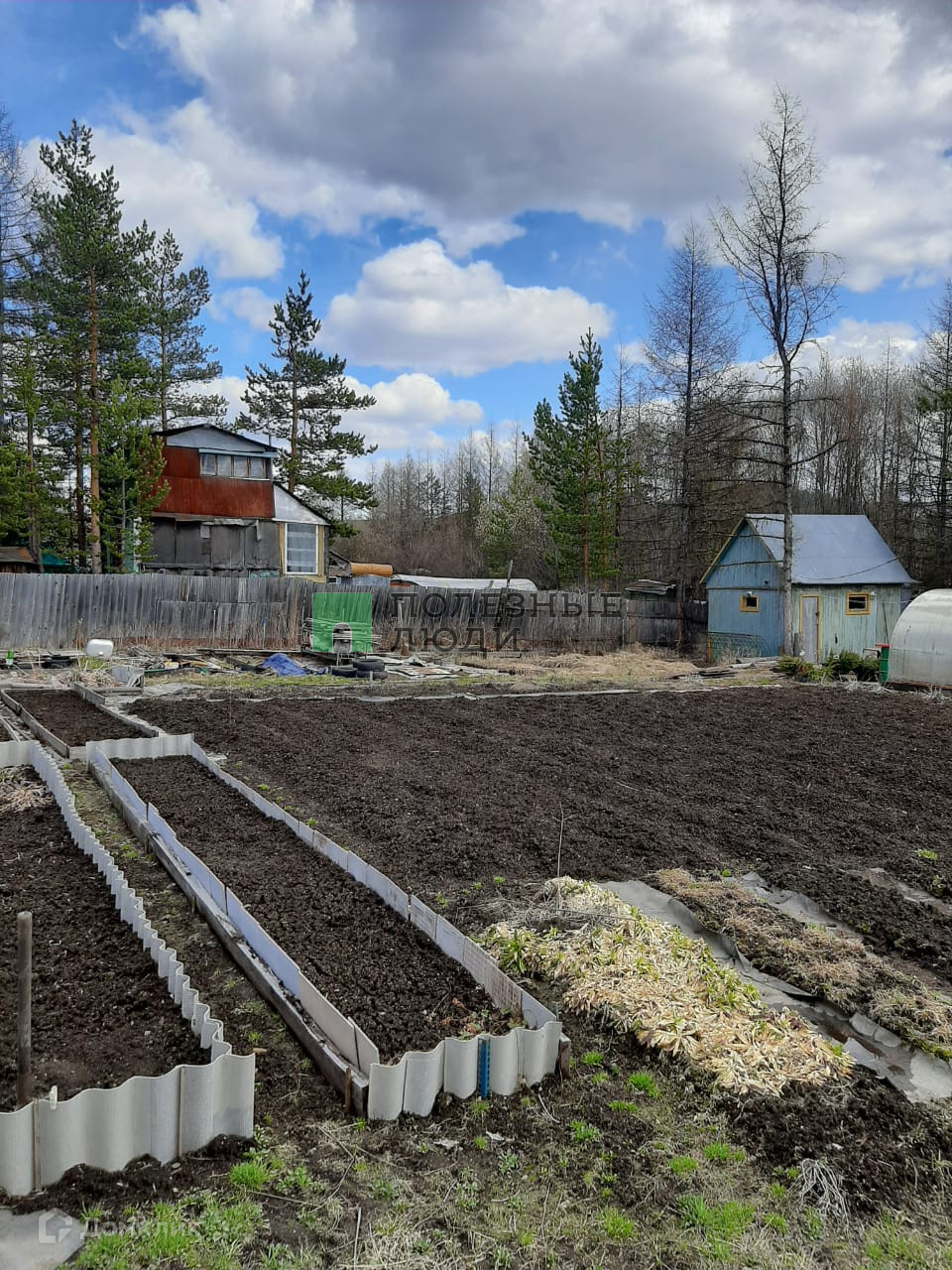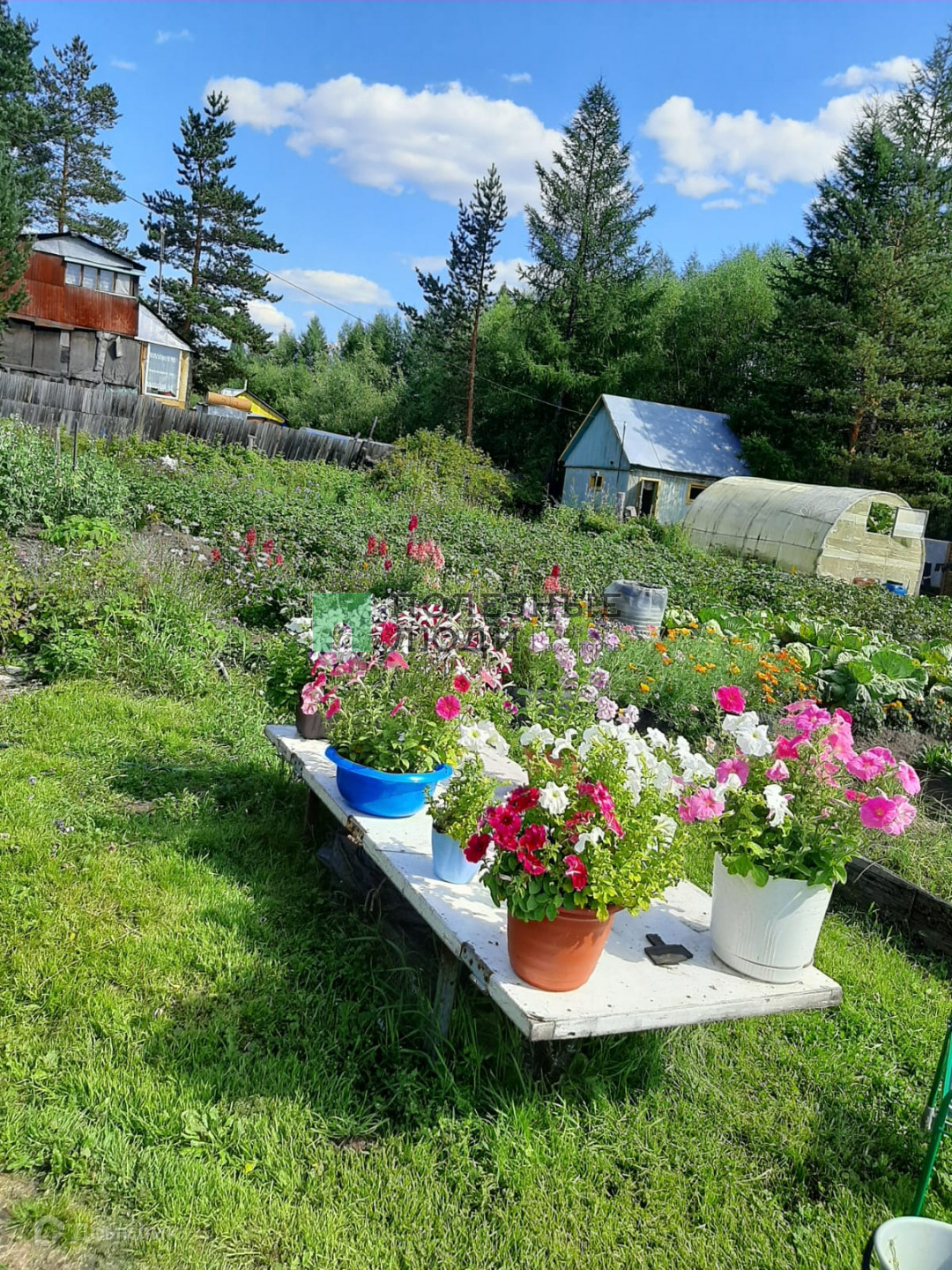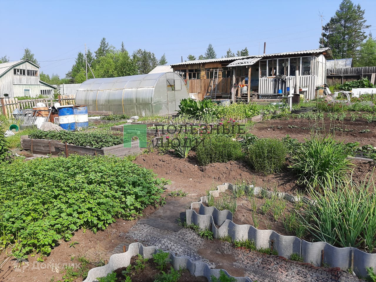 Дом-вагончик (12 метров, разделен на две комнаты) пристроена веранда в доме печь. Есть баня. На территории две теплицы. Грядки, хорошая земля.