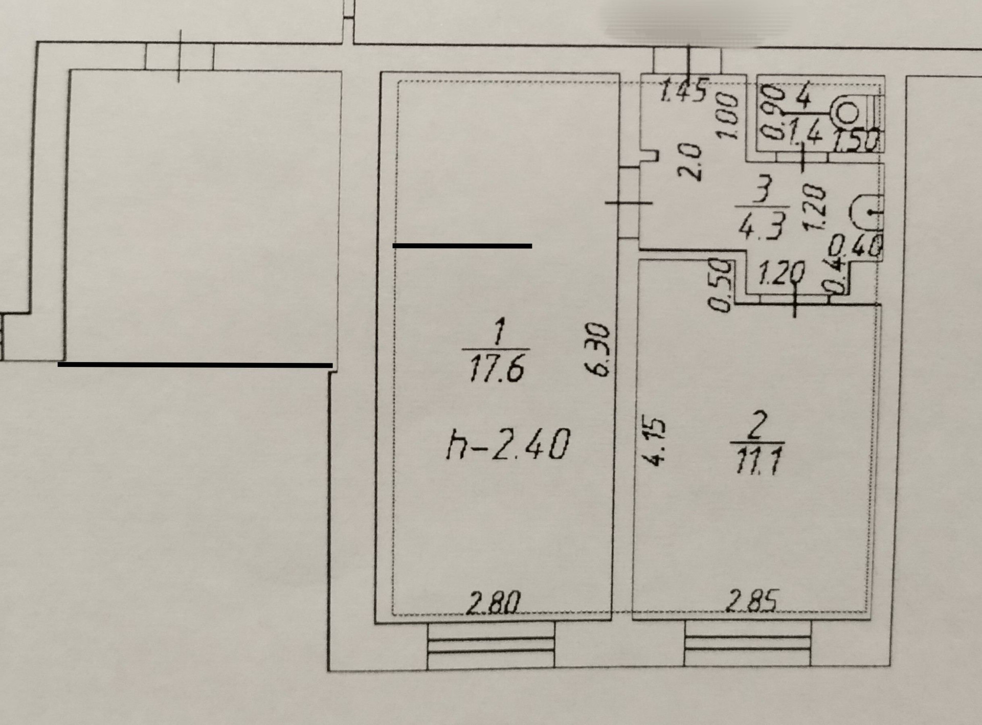 Общая площадь 34.4 м2
