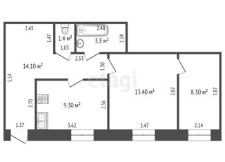 Общая площадь: 52.4 м2