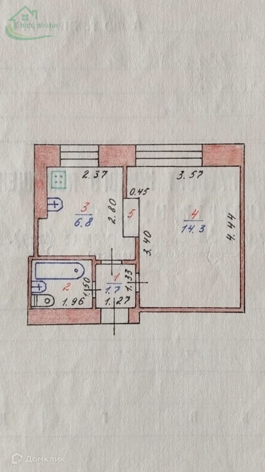 Общая площадь 26.3 м2