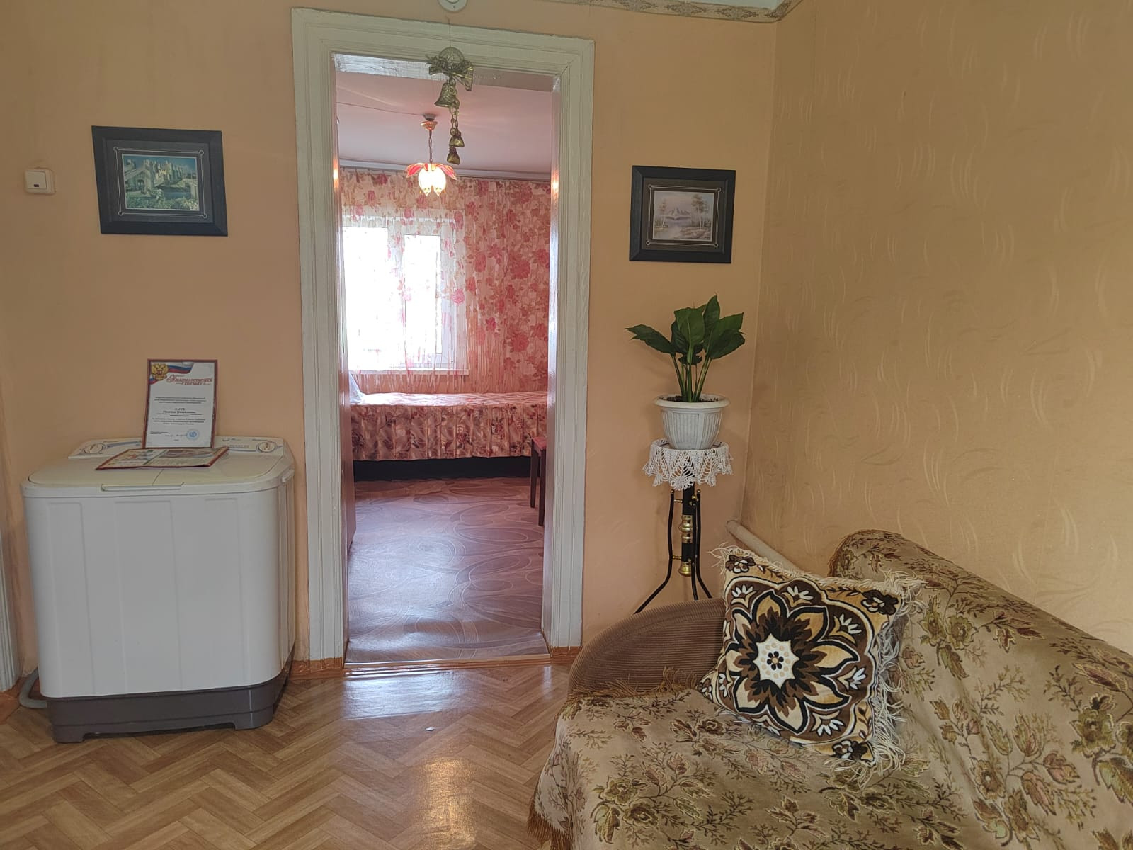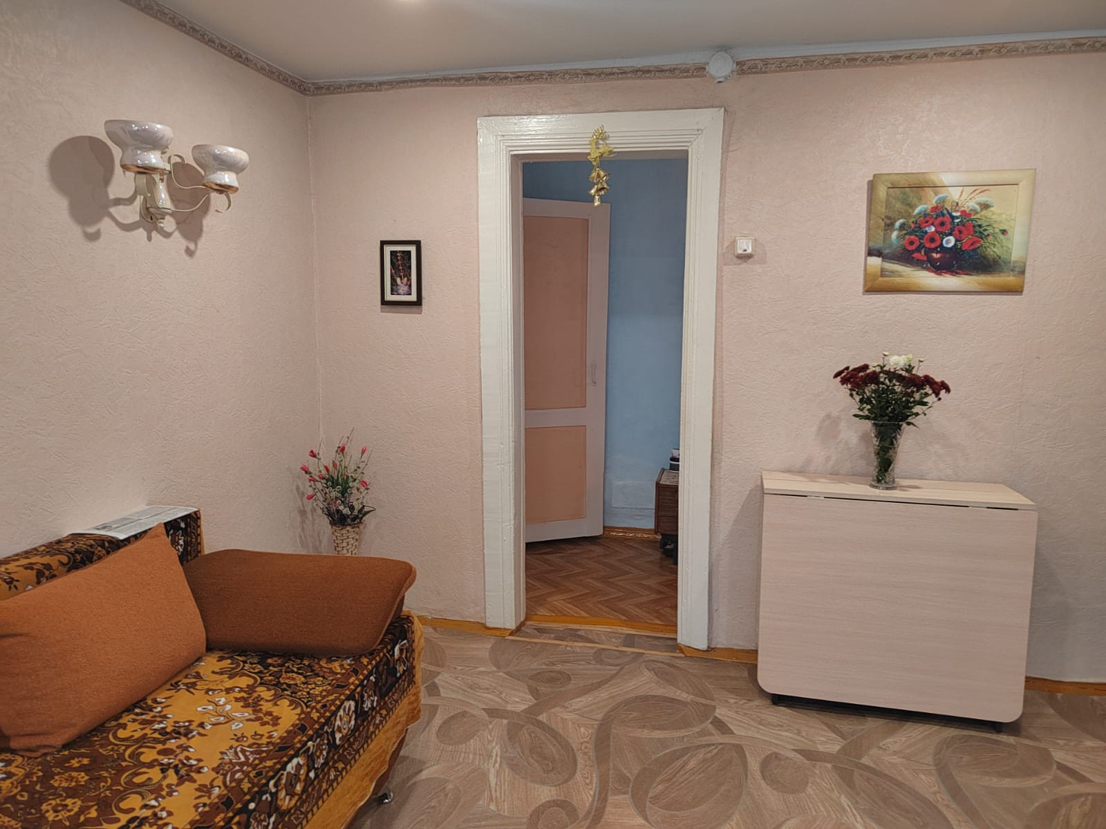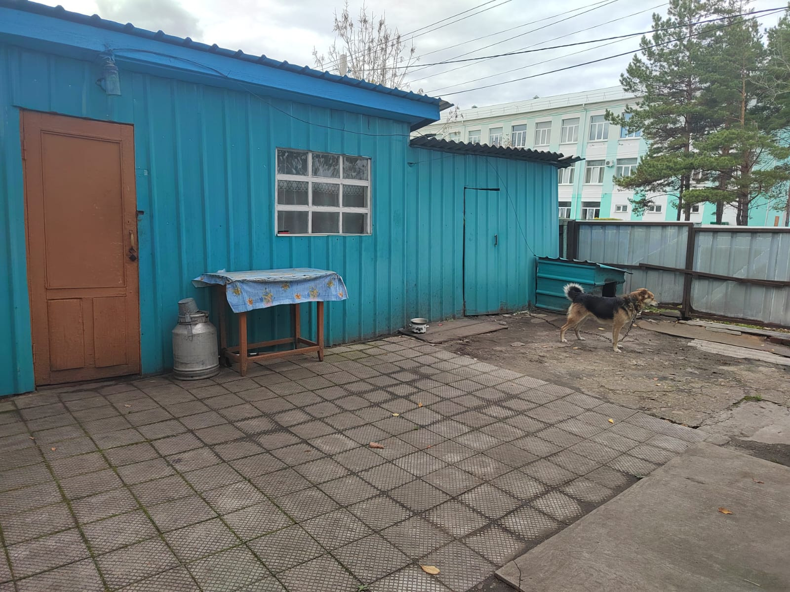 Этот дом расположен в уютном жилом районе, практически в самом центре города. Его фасад выглядит очень аккуратно и ухоженно.  Дом одноэтажный, крыша выполнена в форме скатной, которая прекрасно сочетается с остальными элементами здания. Окна квартиры, которые находятся в этом доме украшаются бело-голубыми рамами.