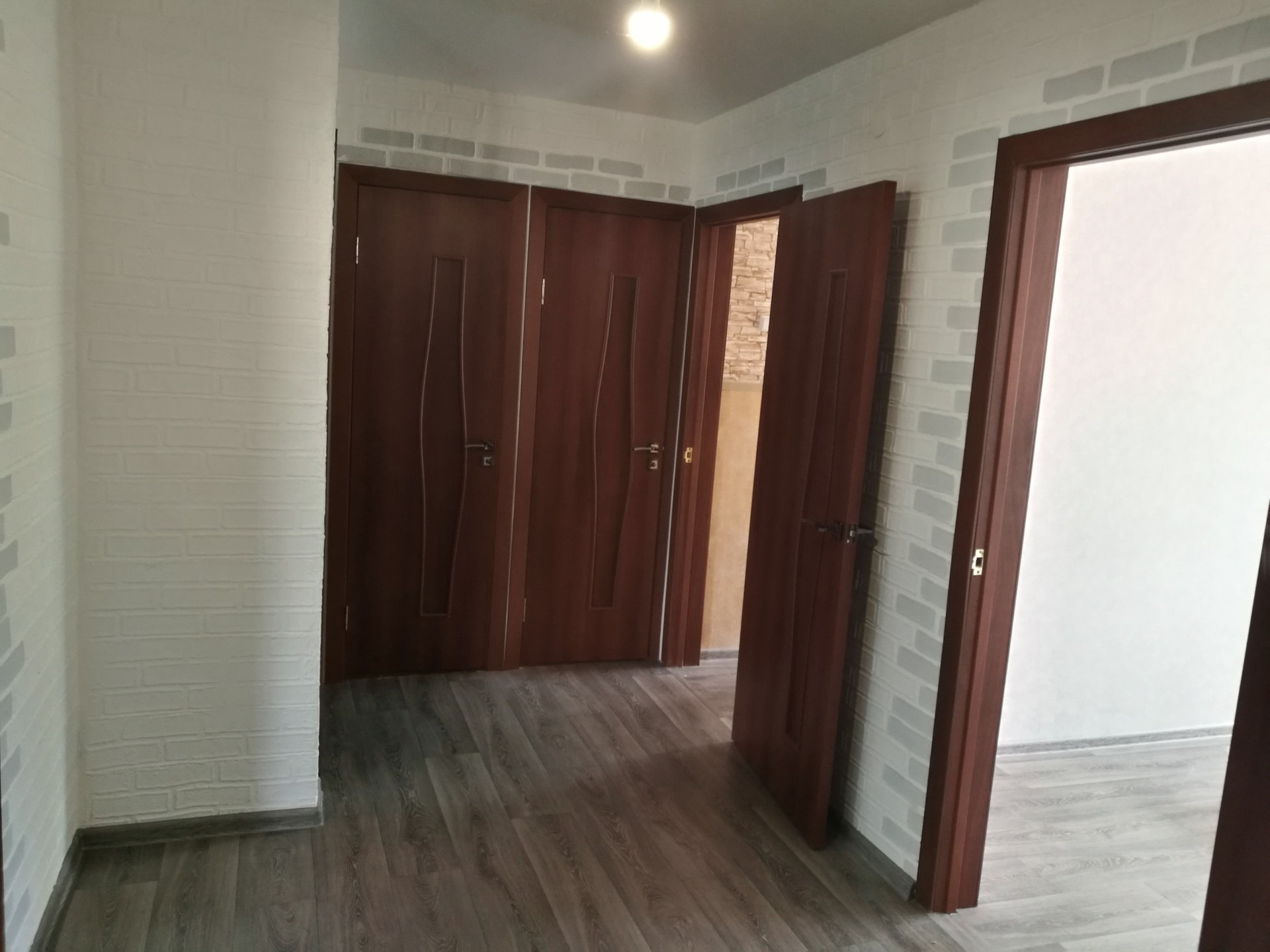 3-х комнатная квартира площадью 64,1 кв.м  в двухквартирном кирпичном доме. Сделан ремонт, заменены, полы, сантехника, натяжные потолки. Центральное отопление, водоснабжение. Сан. узел раздельный. В шаговой доступности дет сад, магазины.