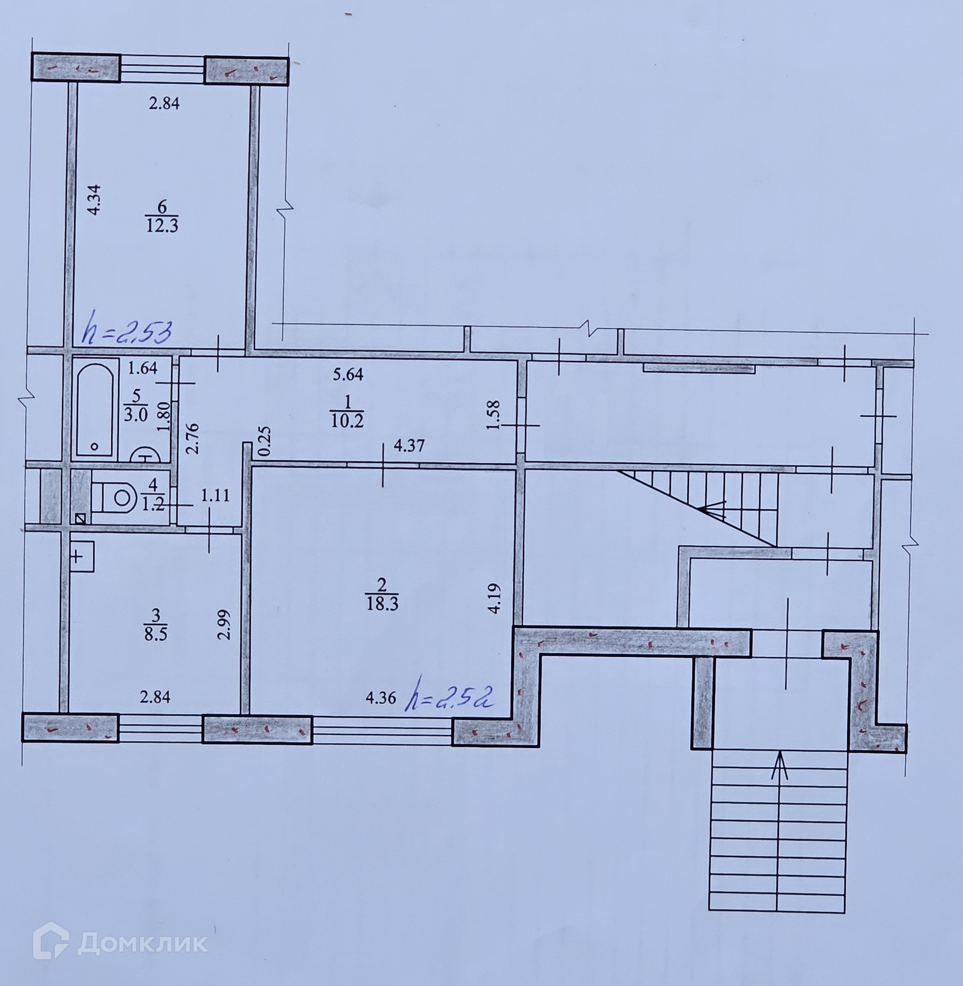 Жилая площадь 30.6 м2
