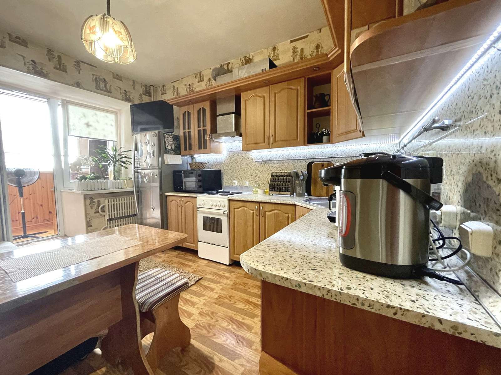 Одним из преимуществ этого объекта является большая кухня (11м2). С/у раздельный. Лоджия 6 м2 обшита вагонкой и утеплена. Выход на лоджию из комнаты и из кухни. Дом оборудован электроплитами. Окна ПВХ, трубы пластиковые, установлены счетчики на электричество и воду. На лестничной площадке есть кладовая.