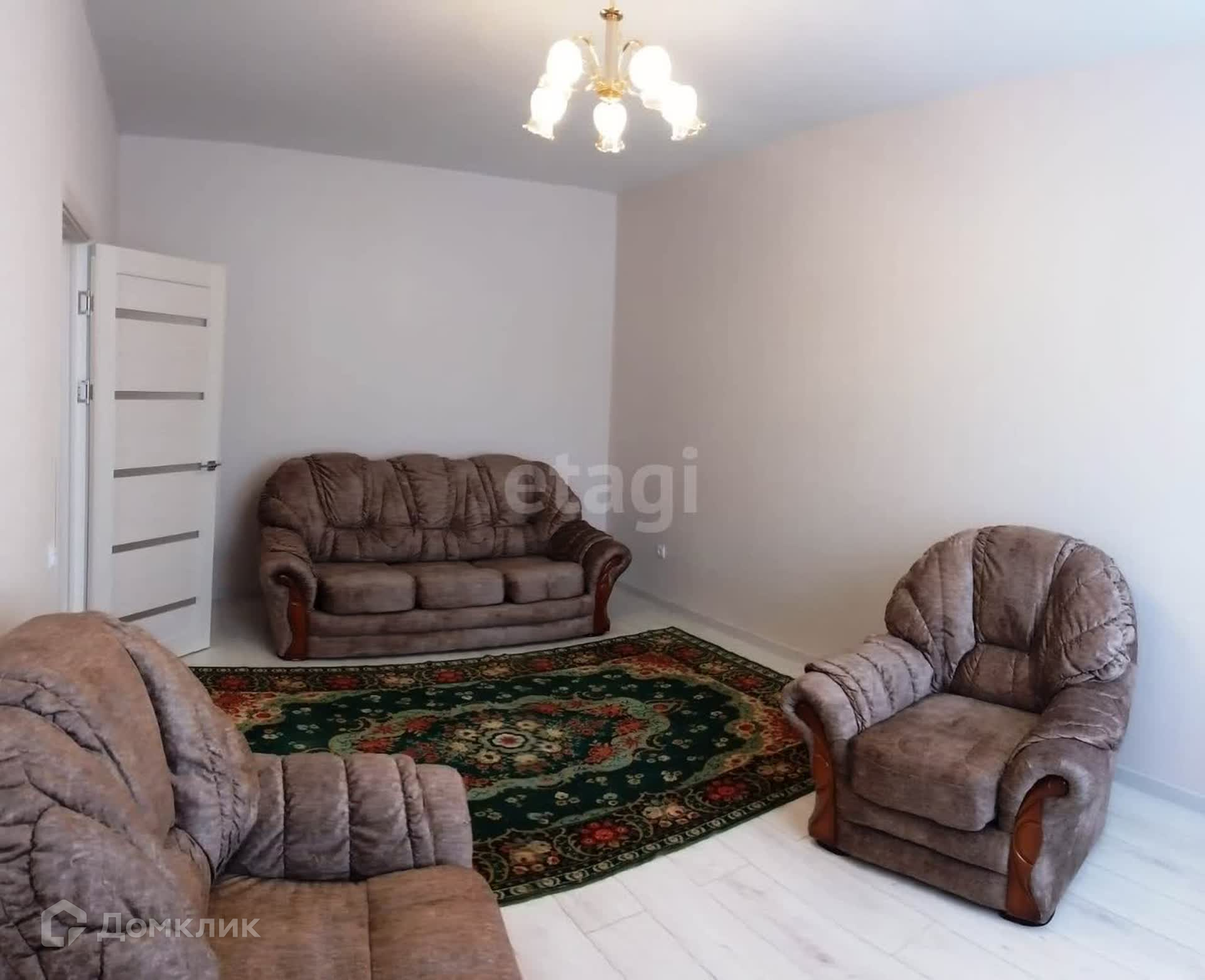 В квартире сделан новый ремонт, никто не жил. Квартира продаётся с мебелью и бытовой техникой, которая на фото. В ванной комнате водяной полотенцесушитель, зеркало с подставкой для принадлежностей, унитаз, ванная. Установлена кухня, подключена газовая плита. В комнате раскладной диван и два кресла. Во всех комнатах люстры.