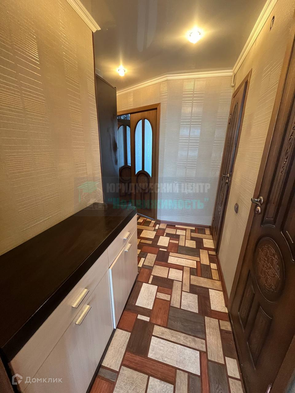 По всей квартире натяжные потолки с точечным освещением.