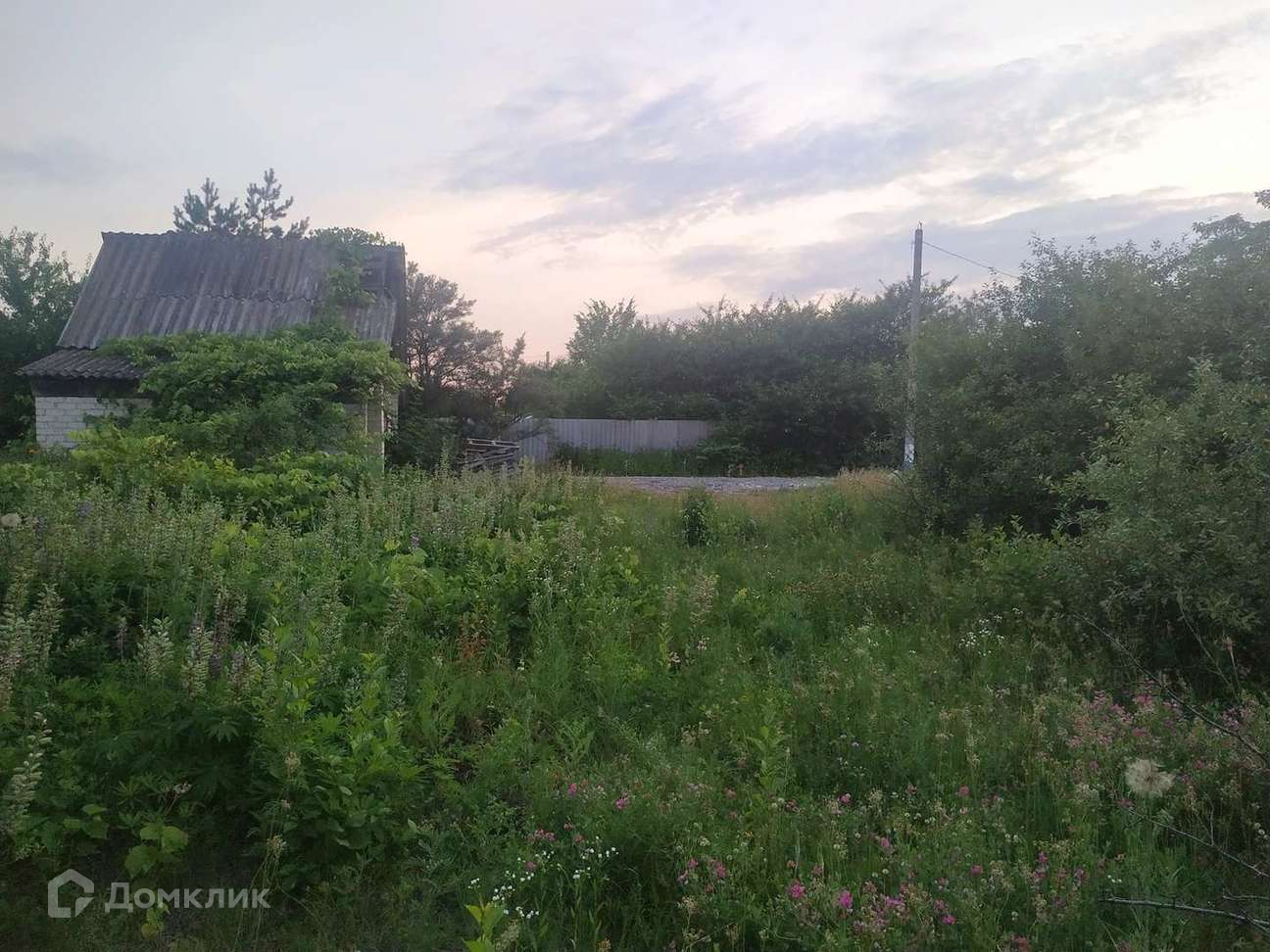 Участок ровный и правильной формы. На участке имеется не достроенный дачный домик. Свет по границе участка.