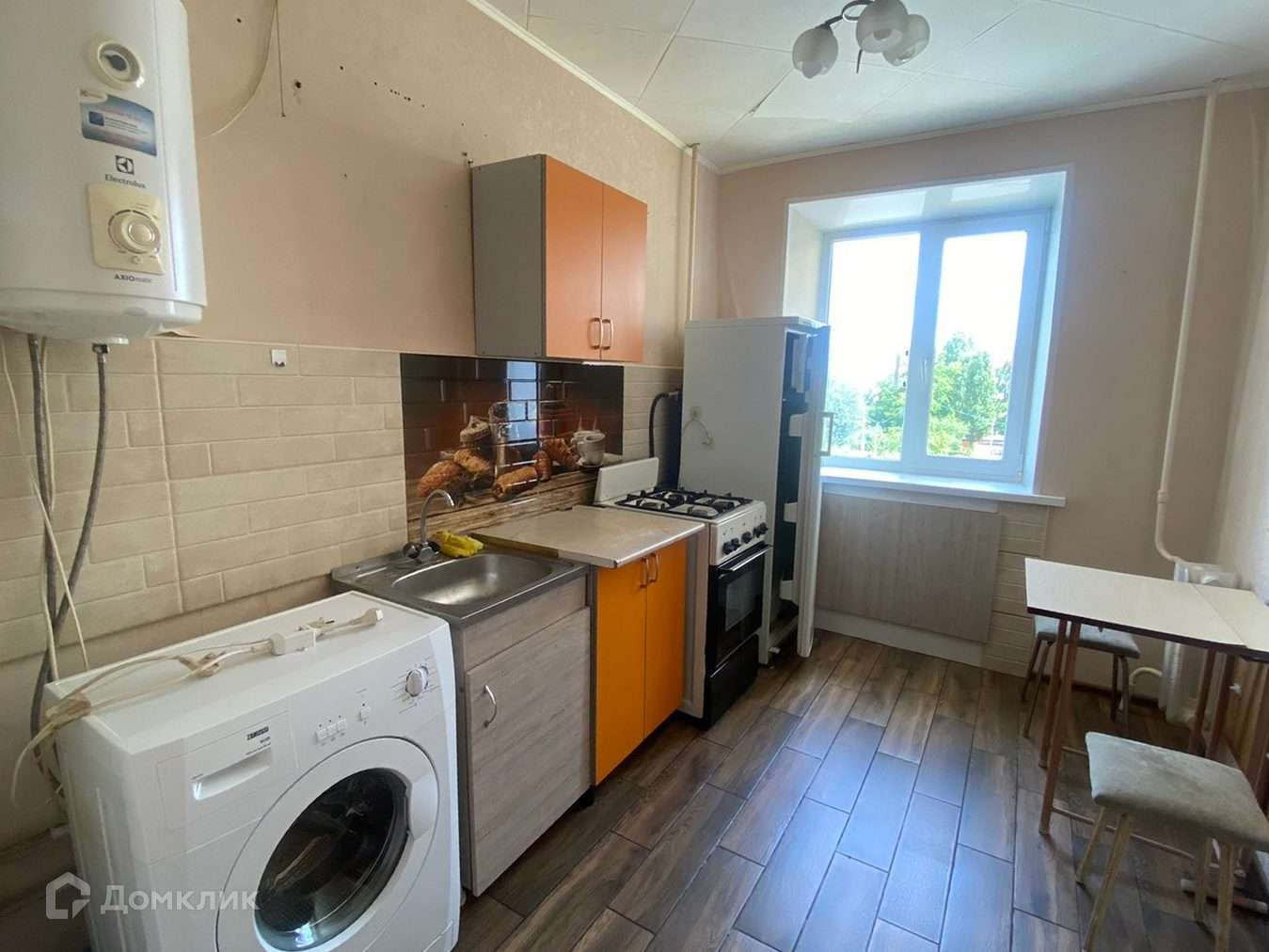 Ремонт выполнен от застройщика. В квартире на стенах поклеены обои, на потолке плиты, на полу постелен линолеум, в кухне ламинат и теплый пол. Лоджия остеклена, с видом на двор, совмещена с комнатой. На кухне установлена колонка. Сан.узел на полу плитка, на стенах кафель.