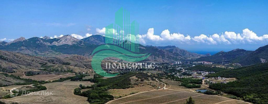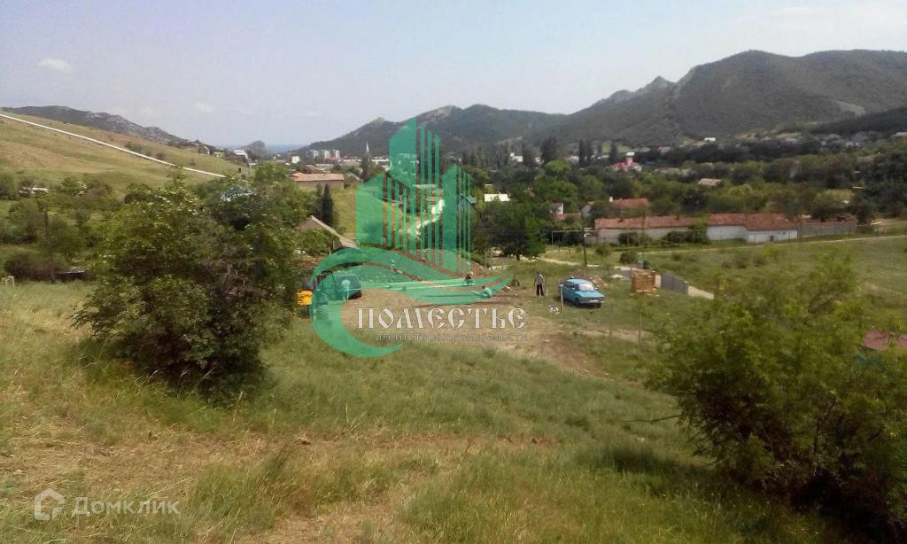 Участок на возвышенности. Виден горизонт моря. До моря п. Курортное 4,5 км. До Коктебеля 9 км.