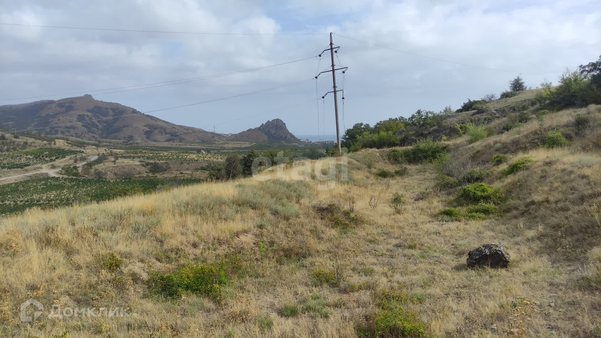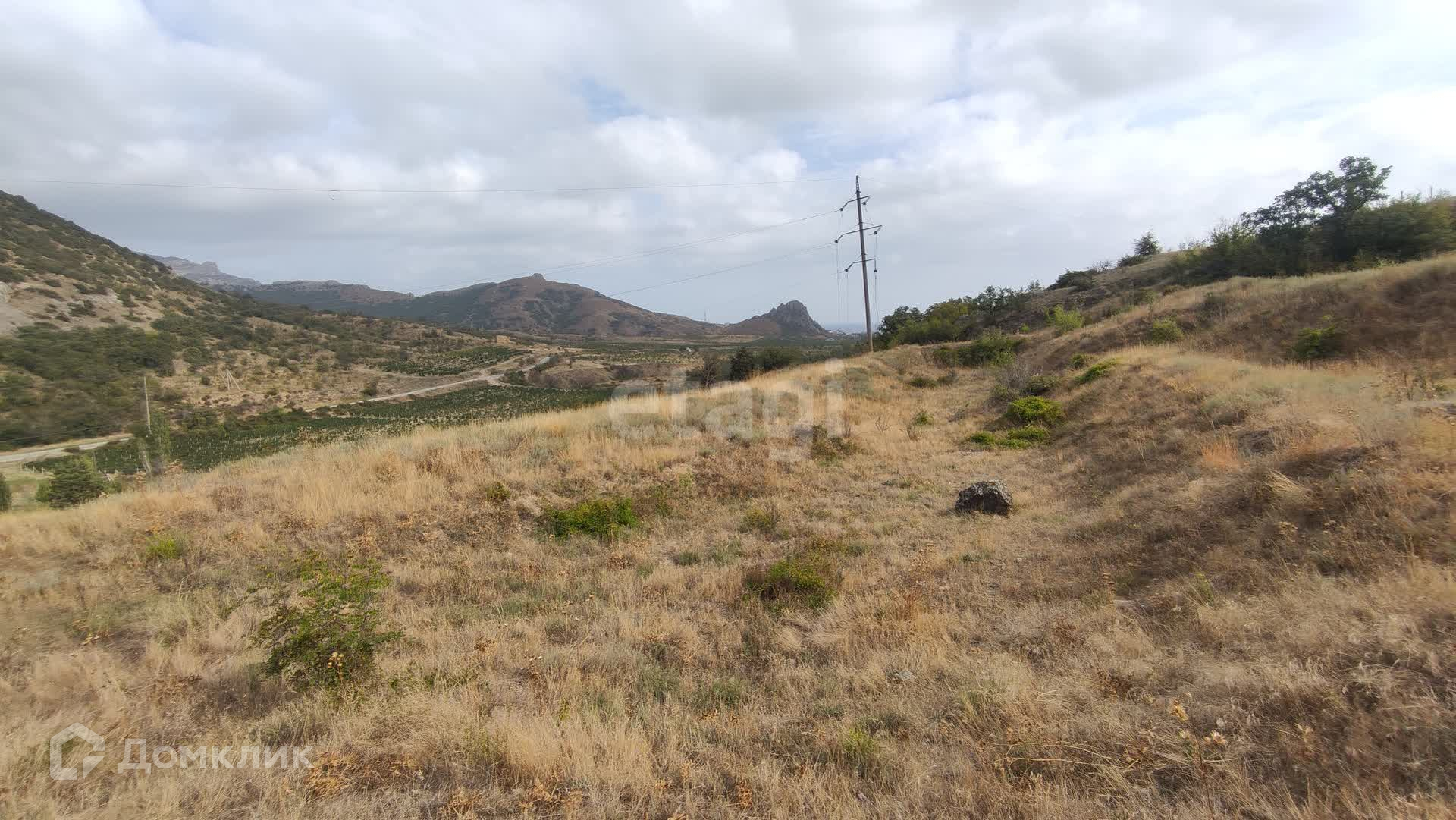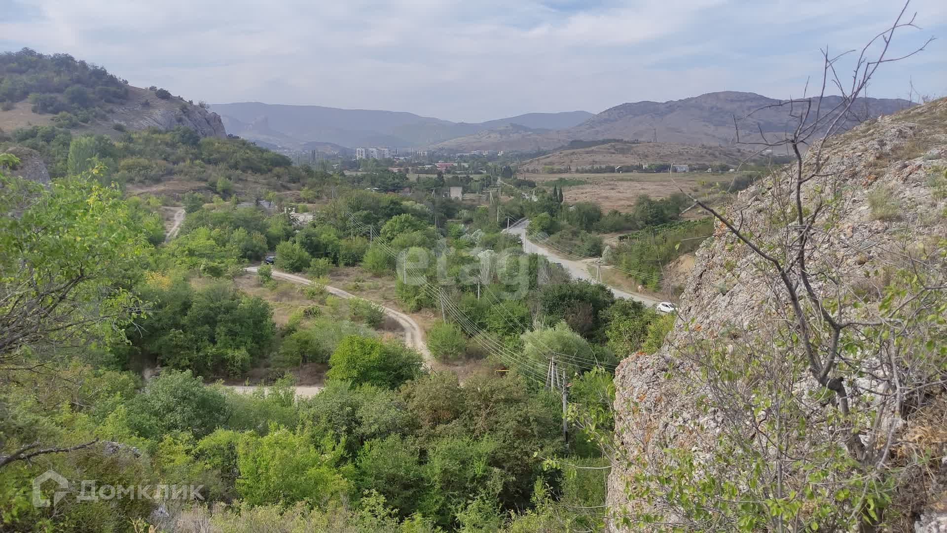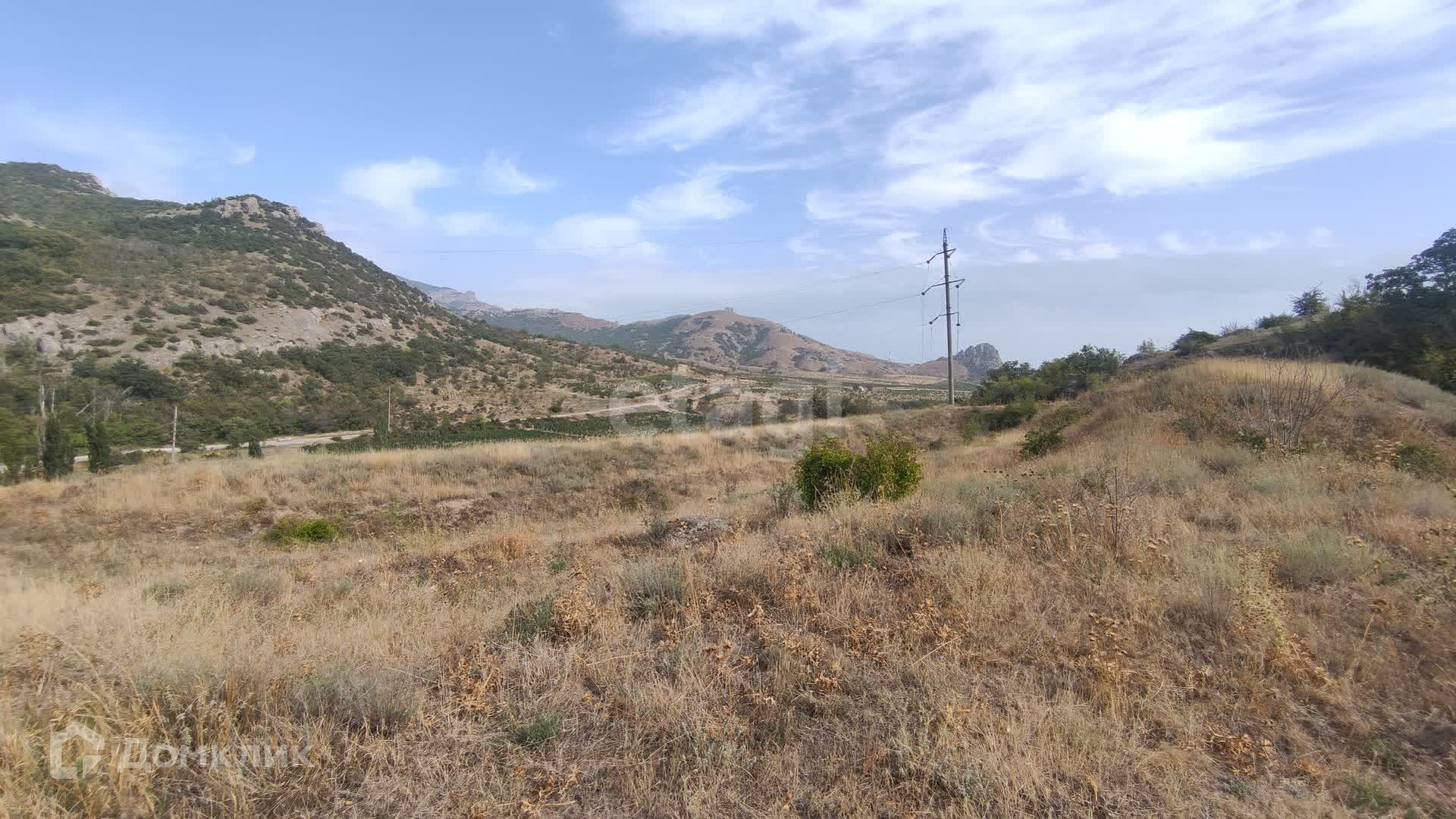 С самого участка открывается удивительный по красоте вид на горный массив Кара-Даг, гору Медовую и морское побережье поселка Курортное.