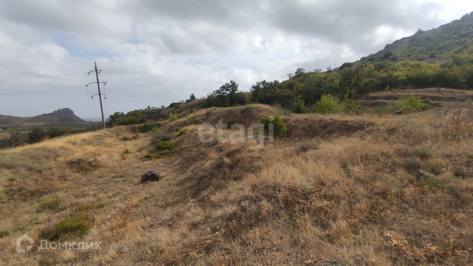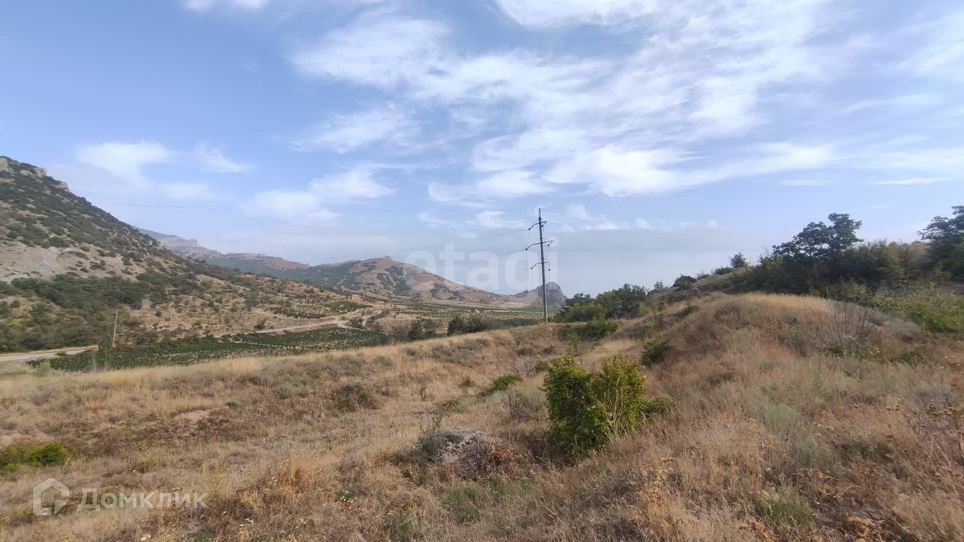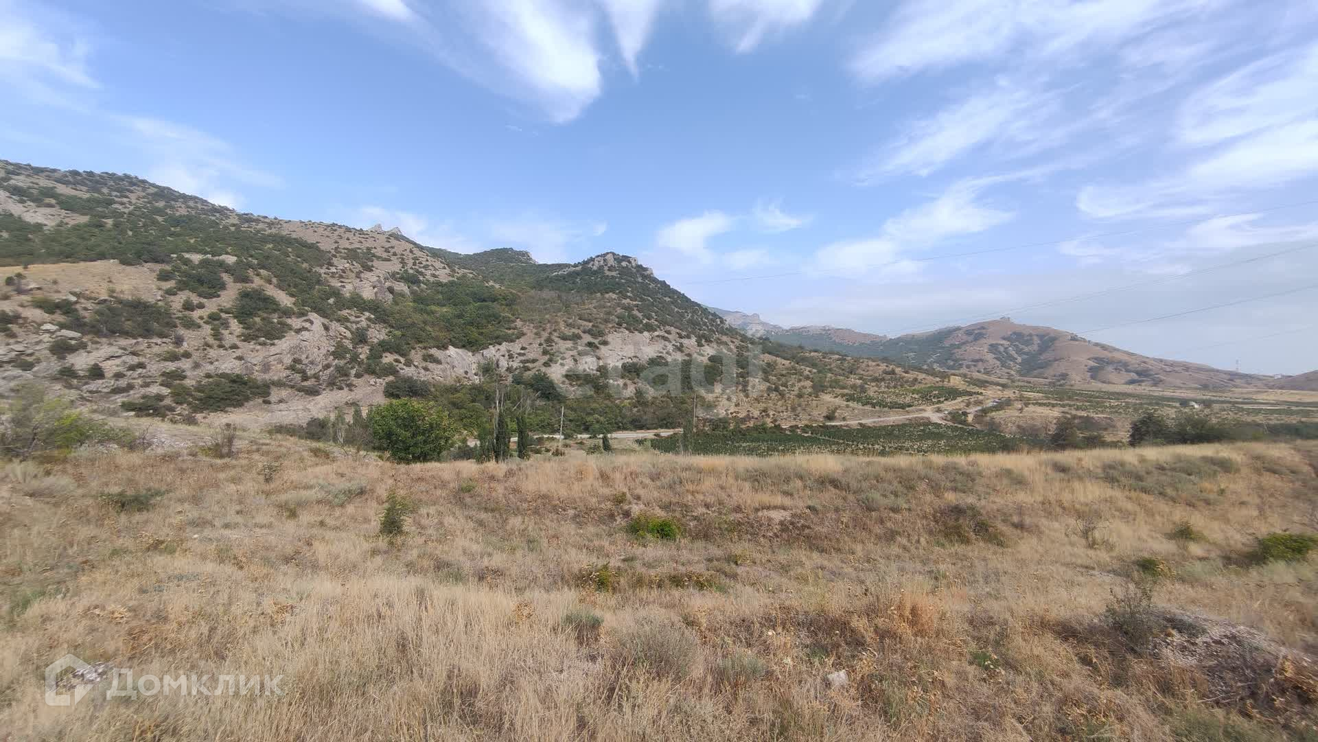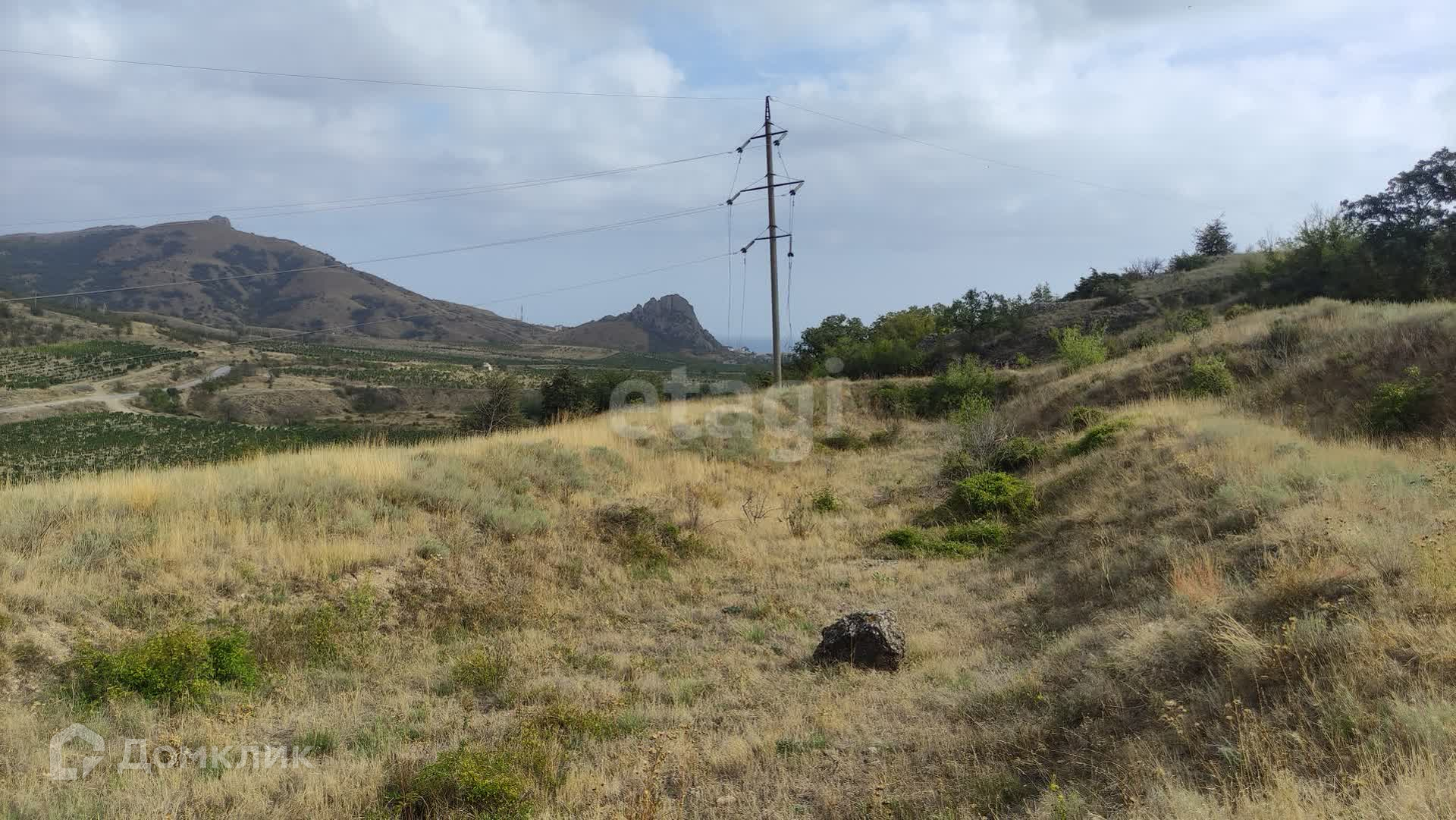С самого участка открывается удивительный по красоте вид на горный массив Кара-Даг, гору Медовую и морское побережье поселка Курортное.