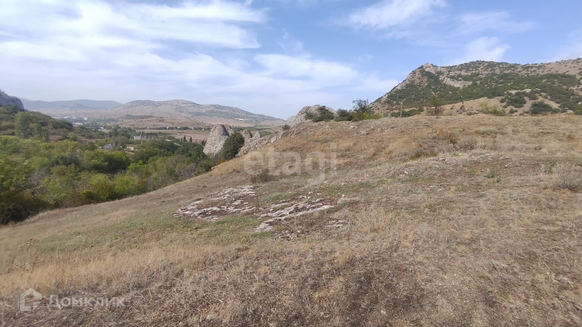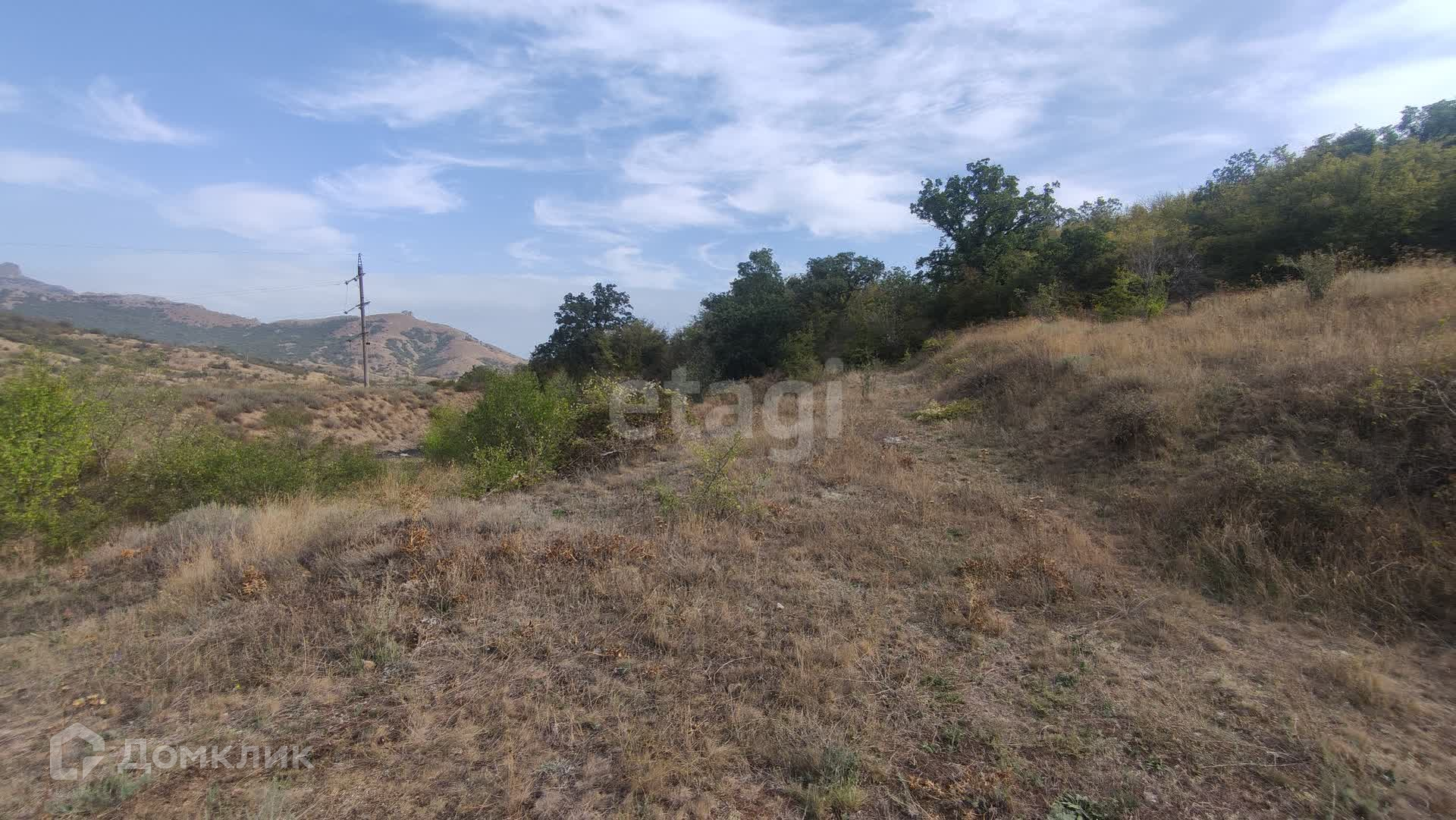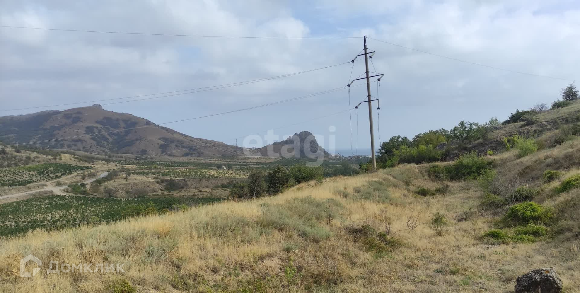 С самого участка открывается удивительный по красоте вид на горный массив Кара-Даг, гору Медовую и морское побережье поселка Курортное.
