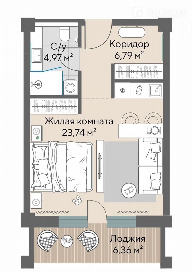 Жилая площадь 23.7 м2