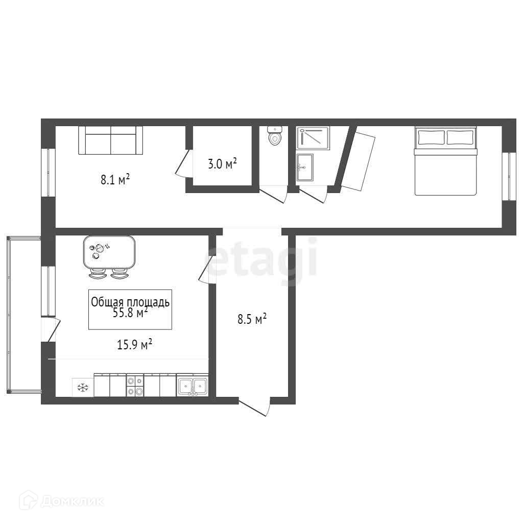 Общая площадь 55.8 м2
