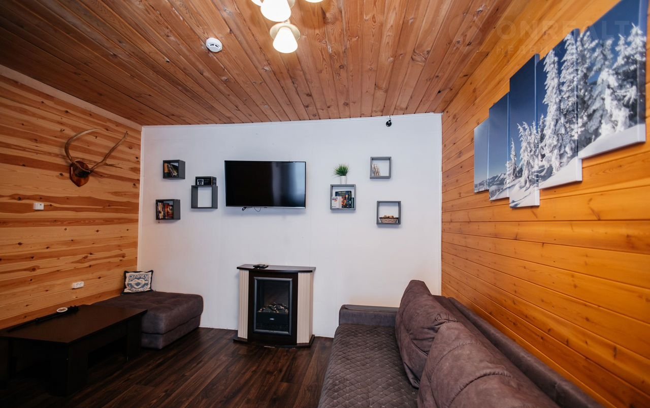 ⁃ Гостиная: мягкий диван, электрокамин, телевизор, настольные игры для вашей компании и детей;