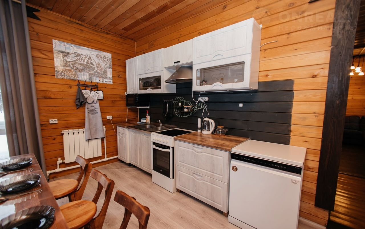 ⁃ Кухня, оборудованная всей необходимой посудой и техникой: плита с духовкой, микроволновка, посудомоечная машина, холодильник, чайник. Также имеется телевизор и Вluеtооth колонка;