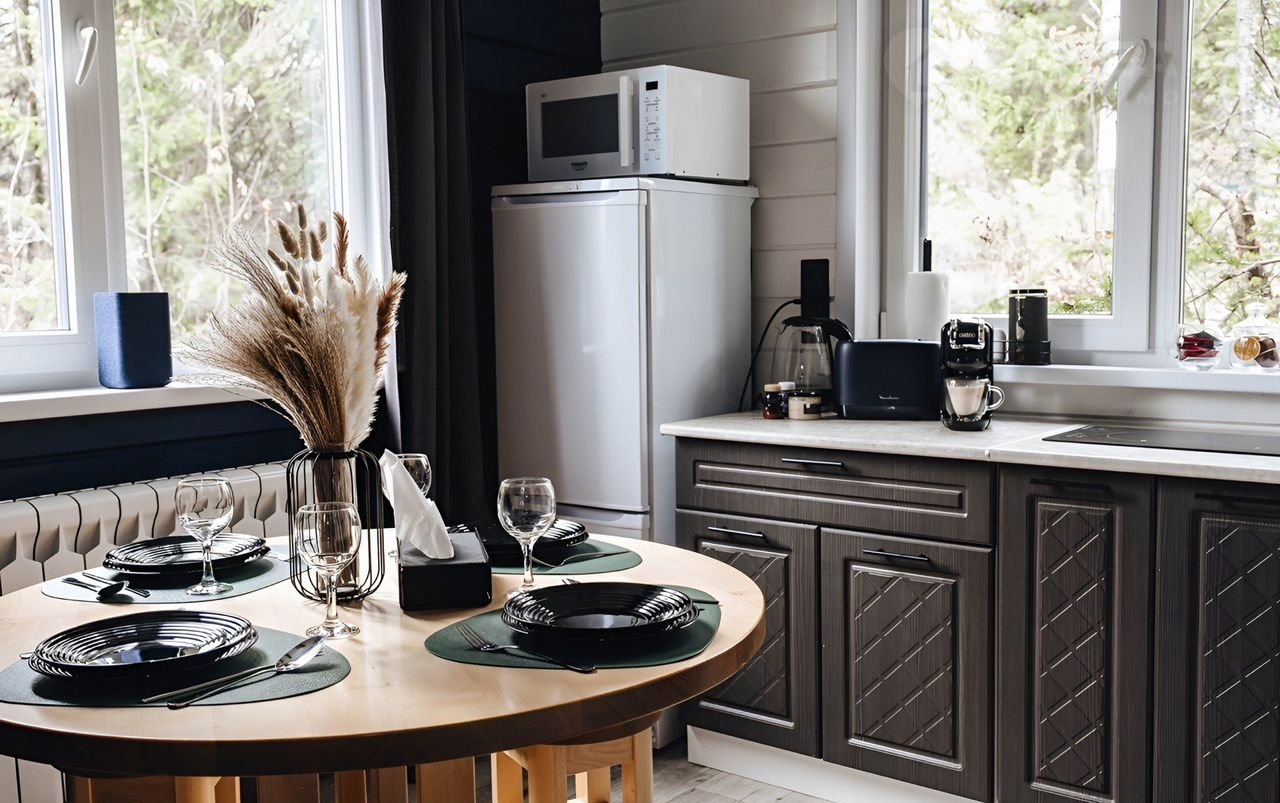 ❄️все необходимые бытовые приборы и столовые принадлежности: само собой чайник/микроволновая печь/стиральная машина/фен/тостер