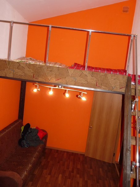 Спальные места: диван-книжка, на втором ярусе - два двухместных ортопедических матраса.