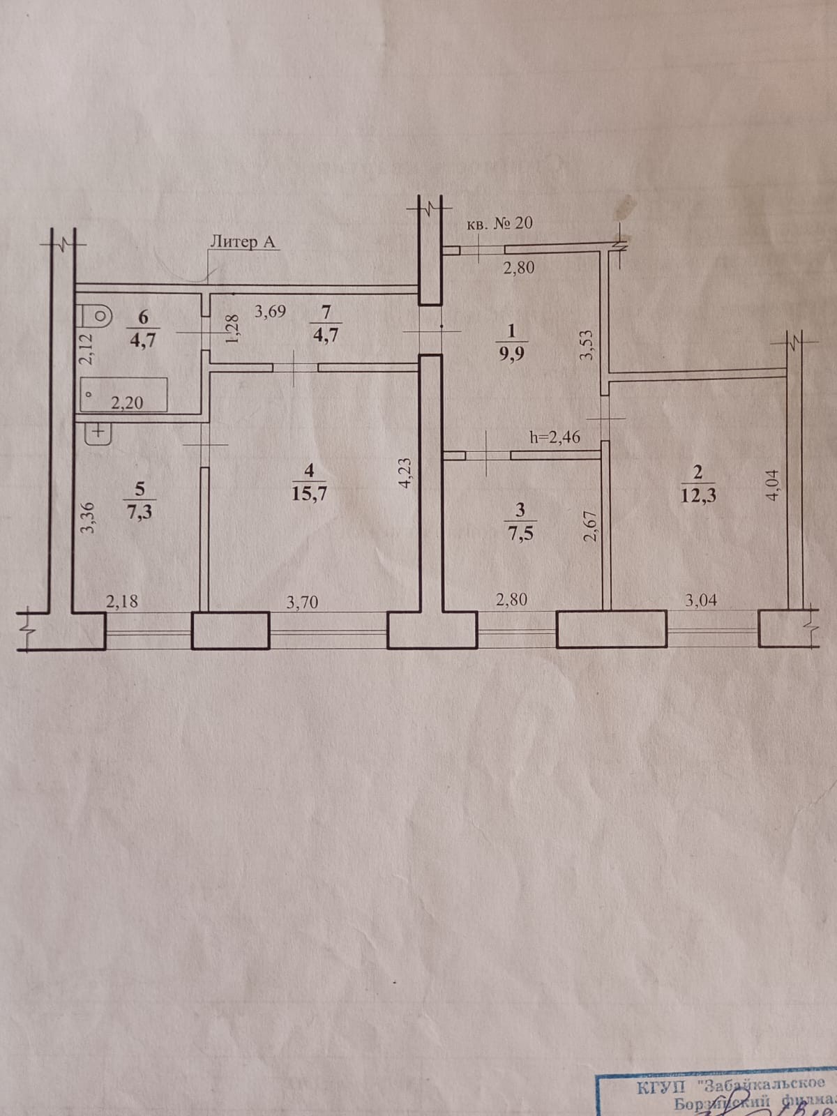 Площадь кухни 7.3 м2