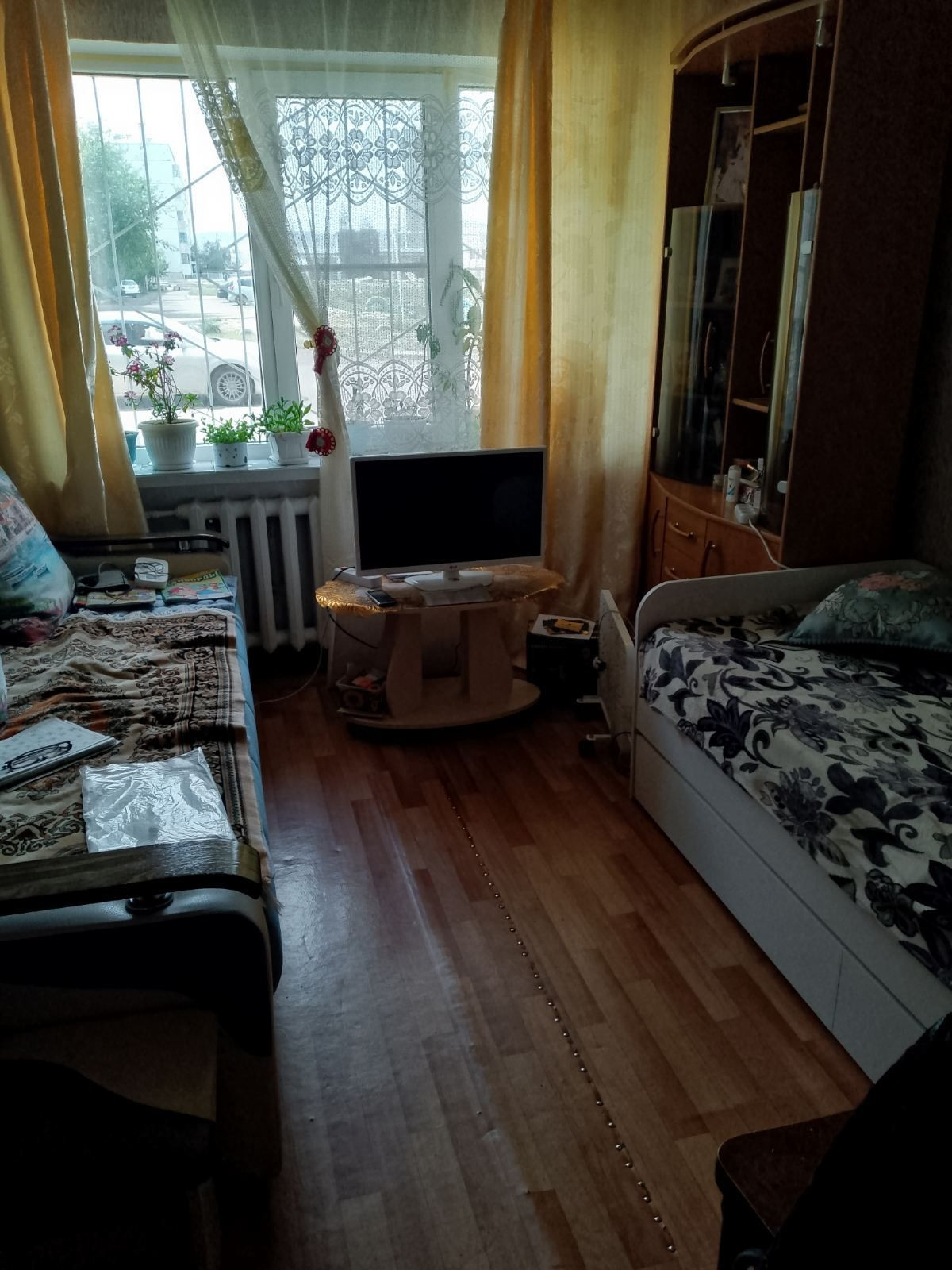 Квартира в хорошем состоянии, окна пластиковые, обои, на полу линолеум.  Сан узел совмещенный.