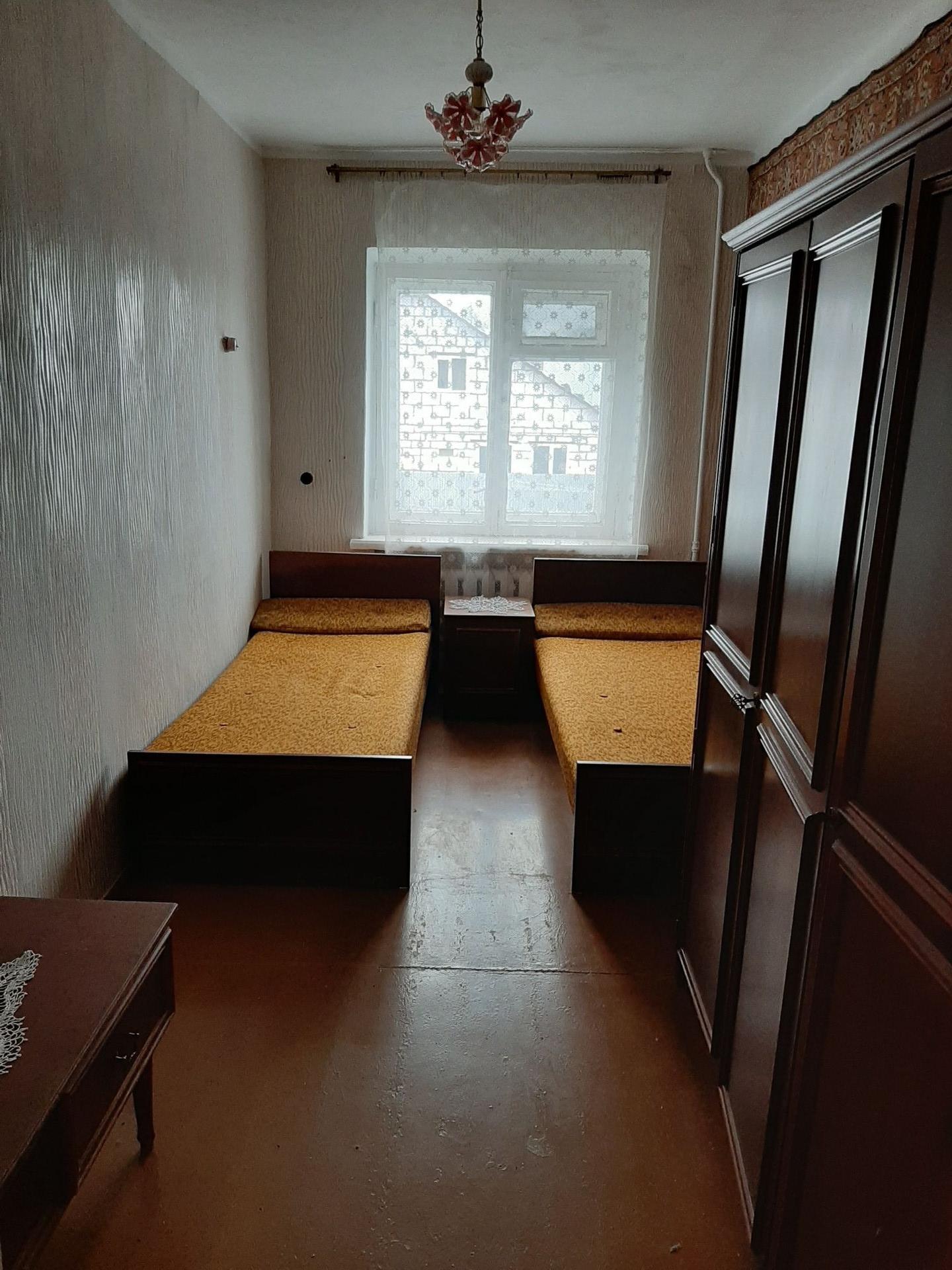 Трехкомнатная квартира в центре поселка, второй этаж двухэтажного дома имеется две кладовки и подвальное помещение для хранения заготовок на зиму в соседнем доме.