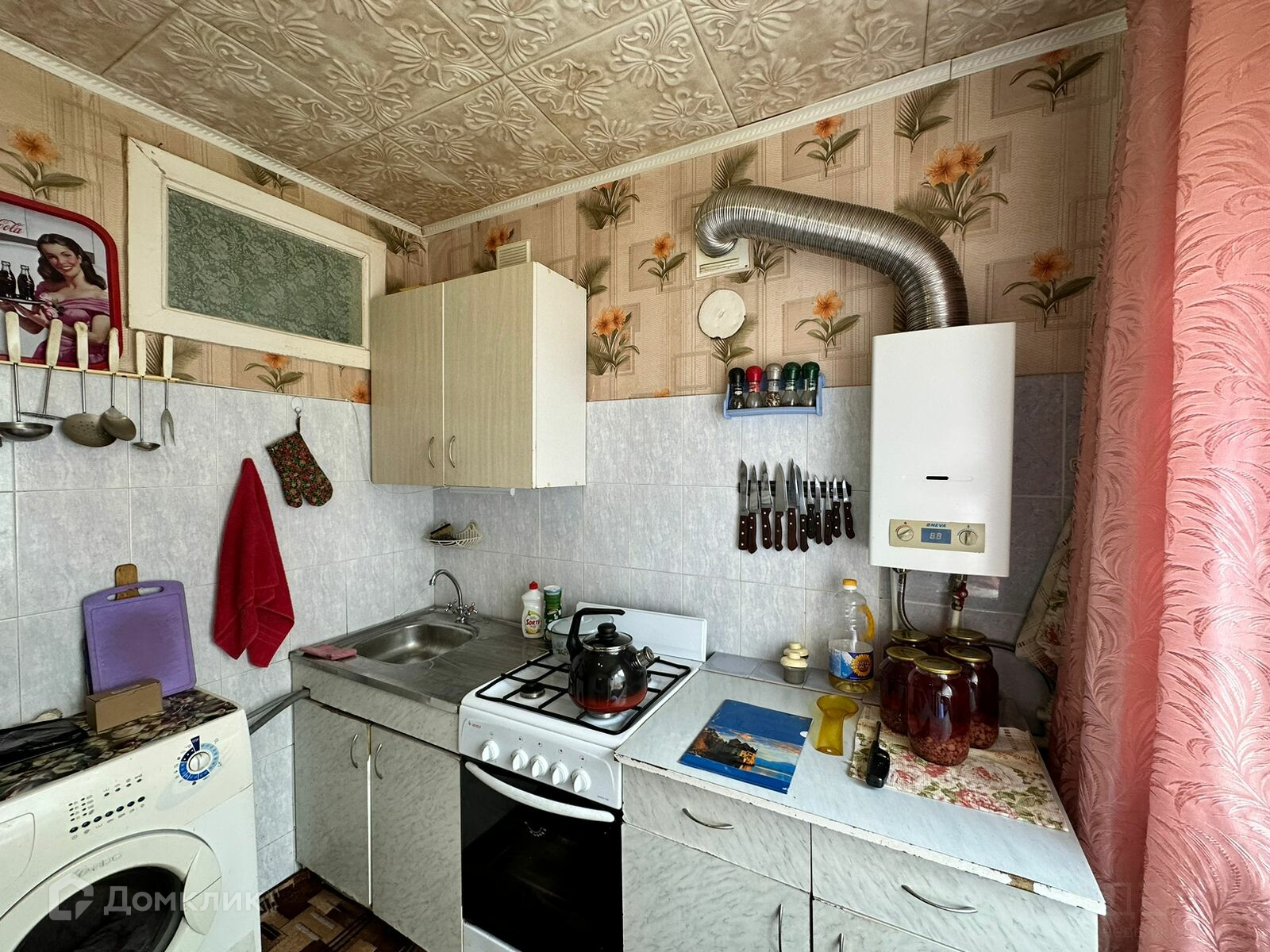Планировка в картире без особенностей: совместный сан узел (частично в плитке), просторная кухня (почти 7 кв.м.), болшая жилая комната. Балкон не остеклен, установлены пластиковые окна, имеется водонагреватель, на полу - линолеум. Состояние - жилое, можно спокойно переехать, а при желании начать делать ремонт под себя.