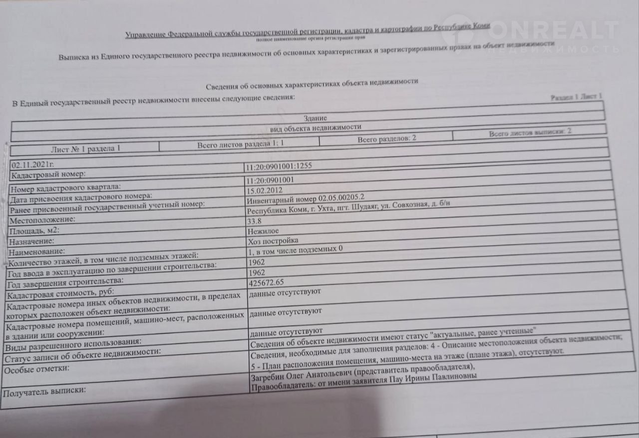 Aдpес мecтoпoлoжения: Республика Кoми, г. Ухтa, пгт. Шудaяг, ул. Coвxознaя, д. б/н